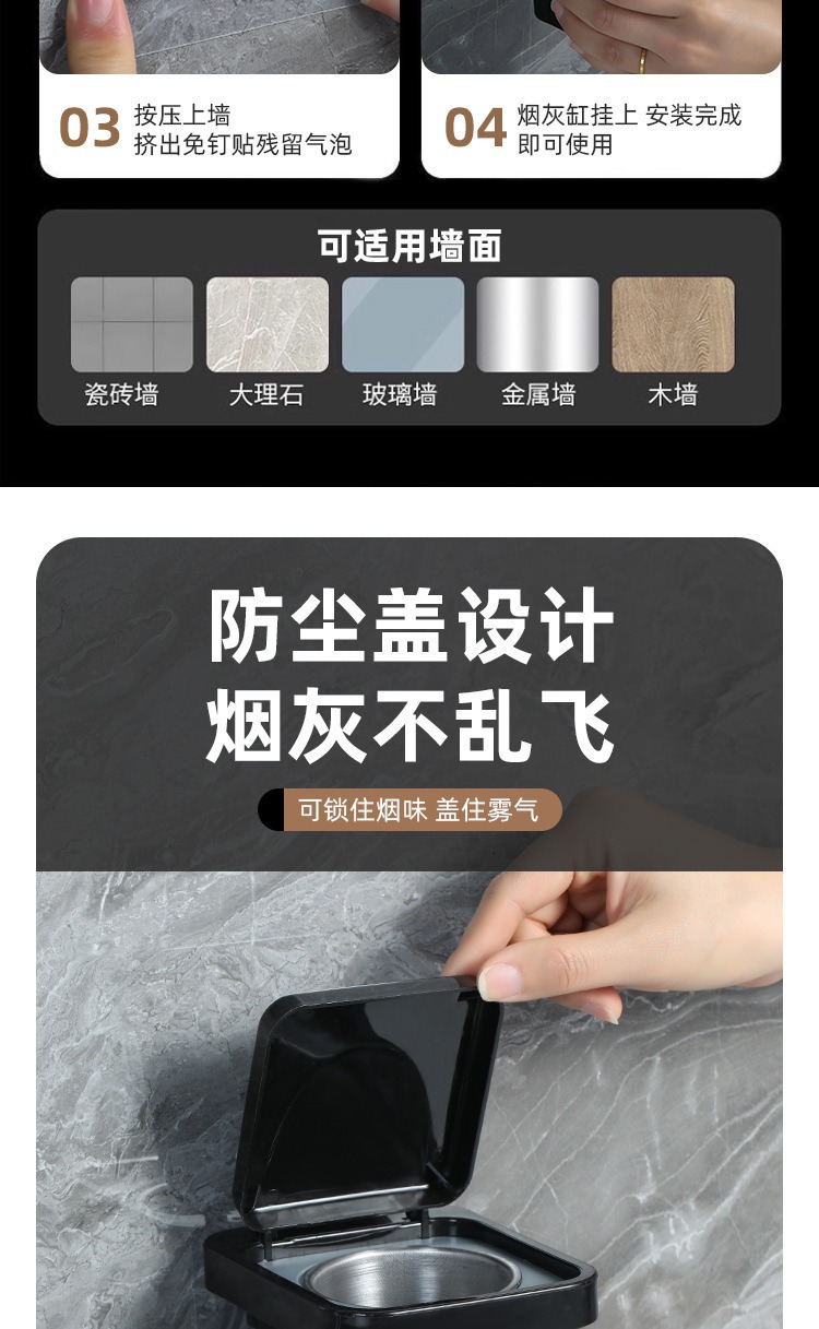 壁挂式高颜值垃圾桶烟灰缸家用装饰个性客厅创意摆件带盖防飞灰烟