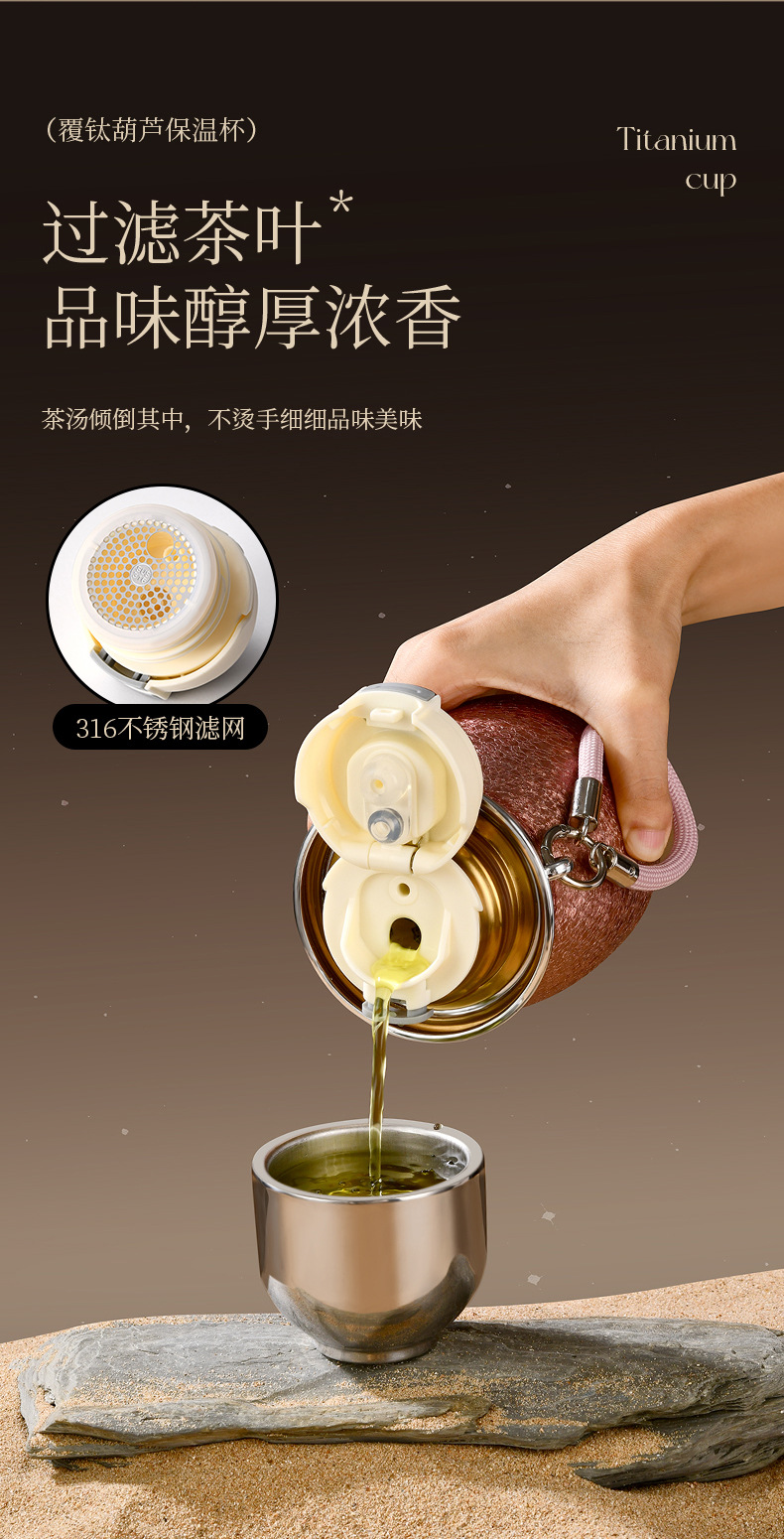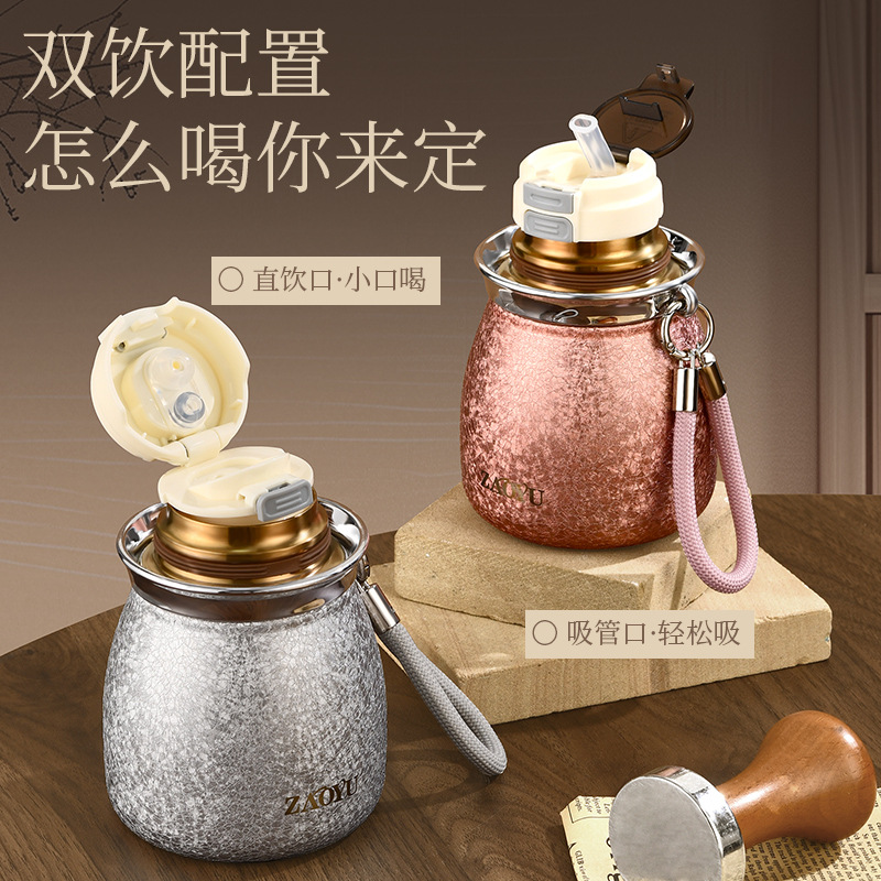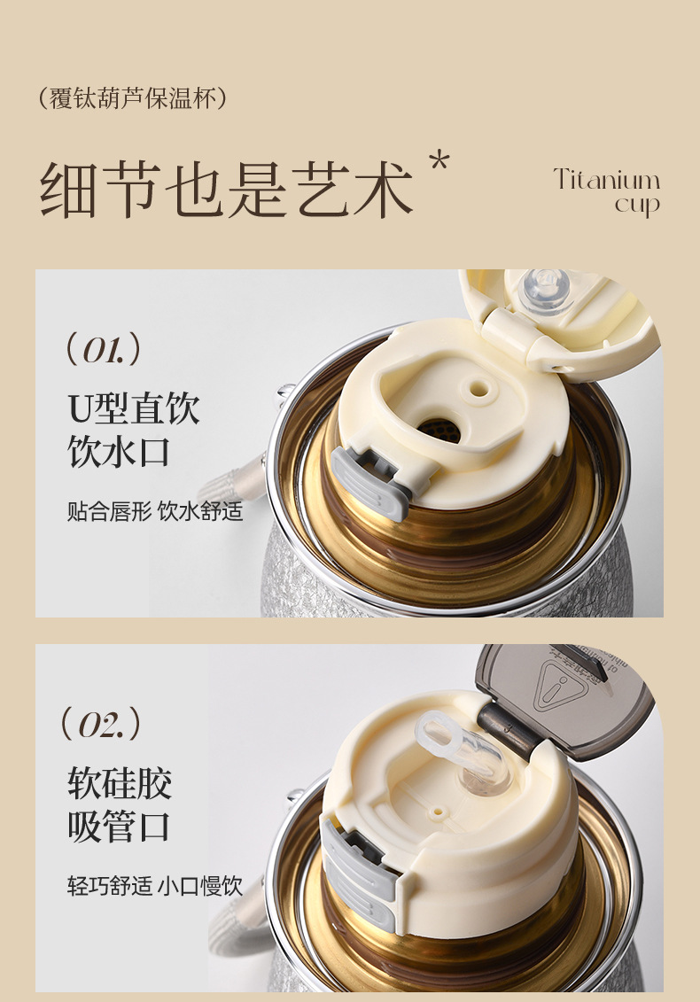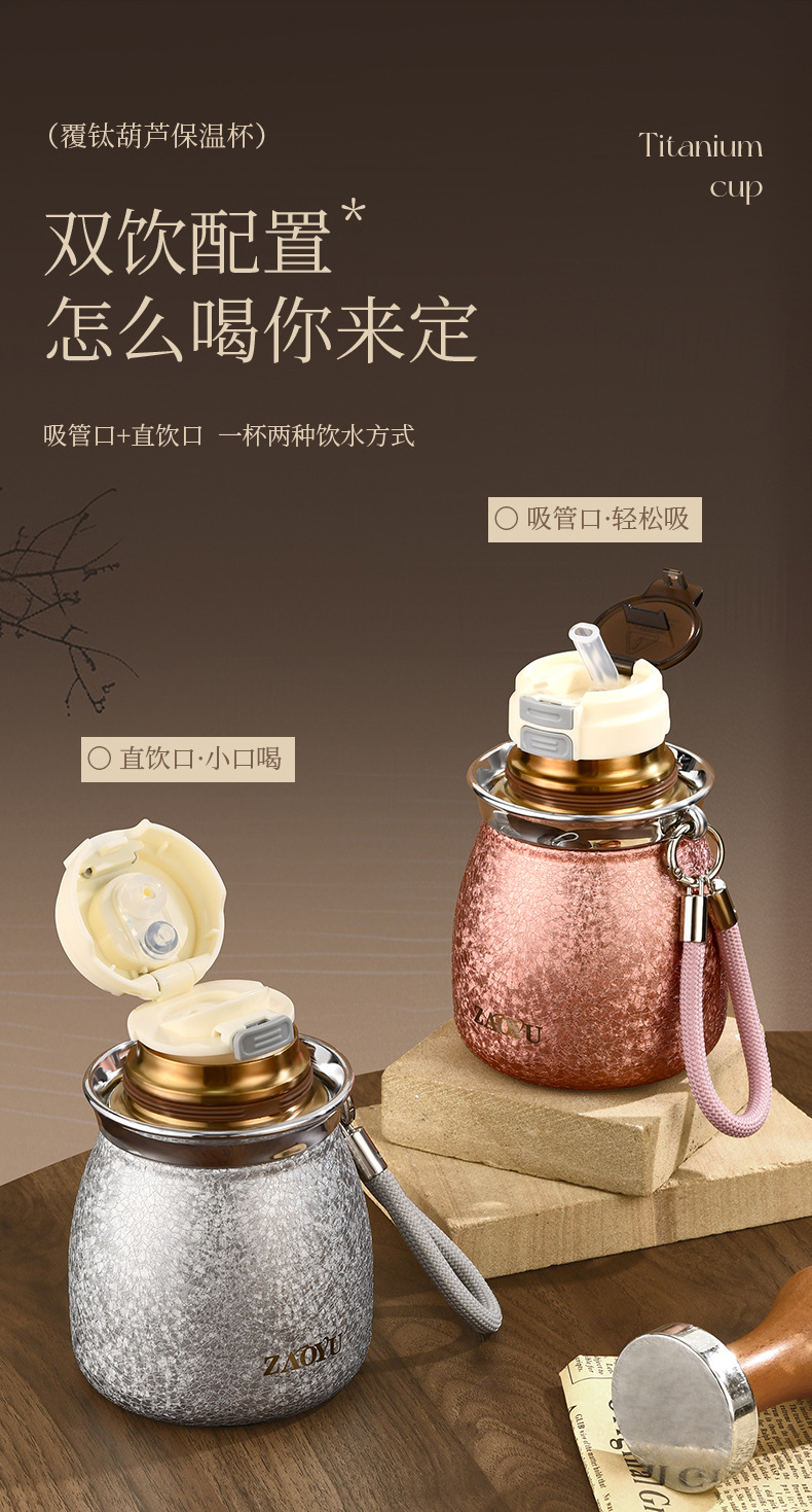 新款葫芦保温杯高档覆钛保温杯高颜值双饮吸管杯茶水分离旅行水杯