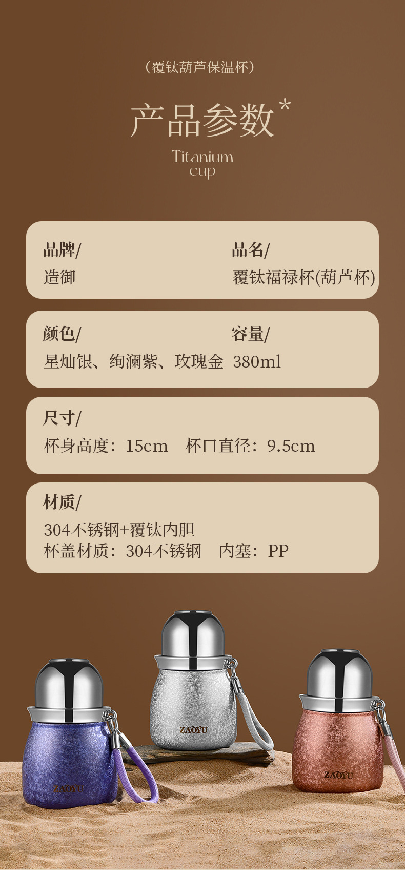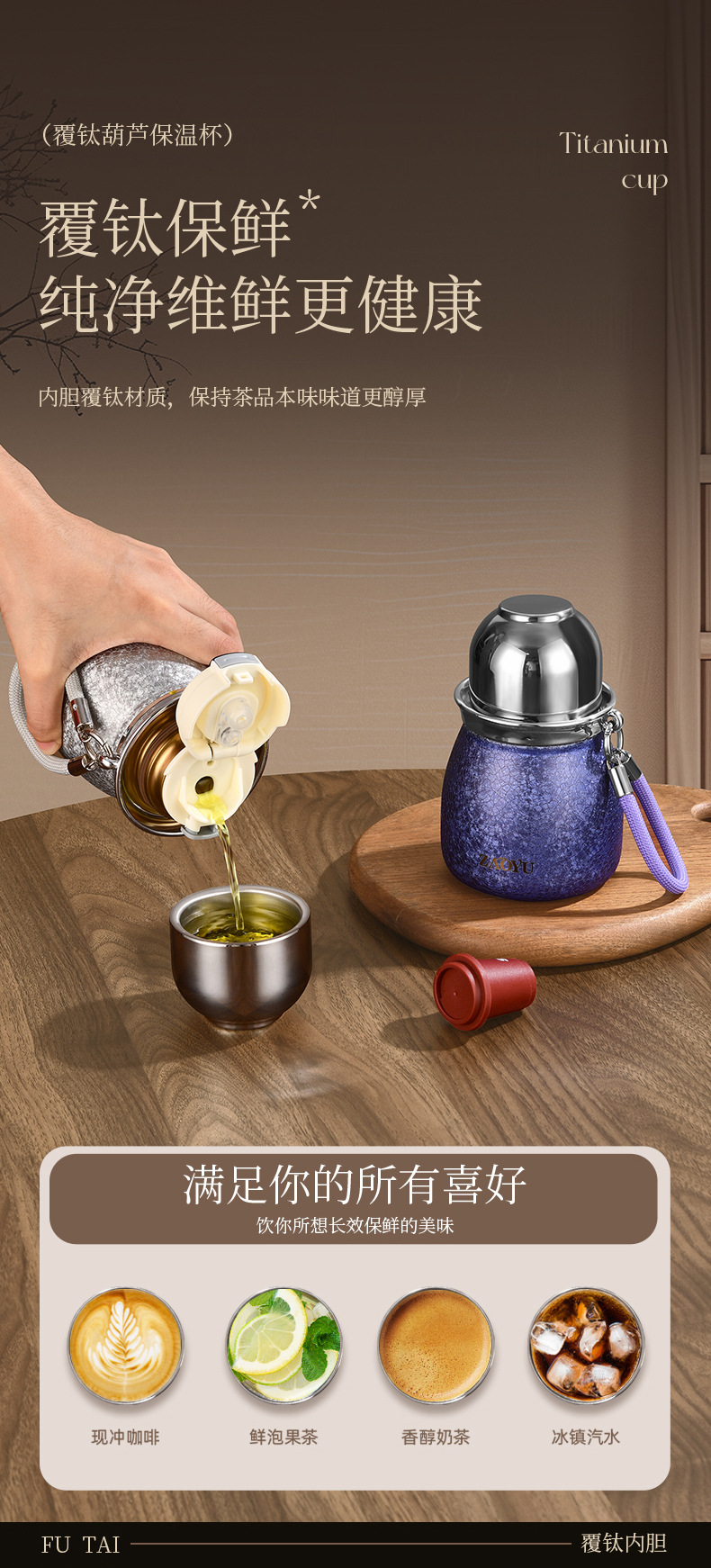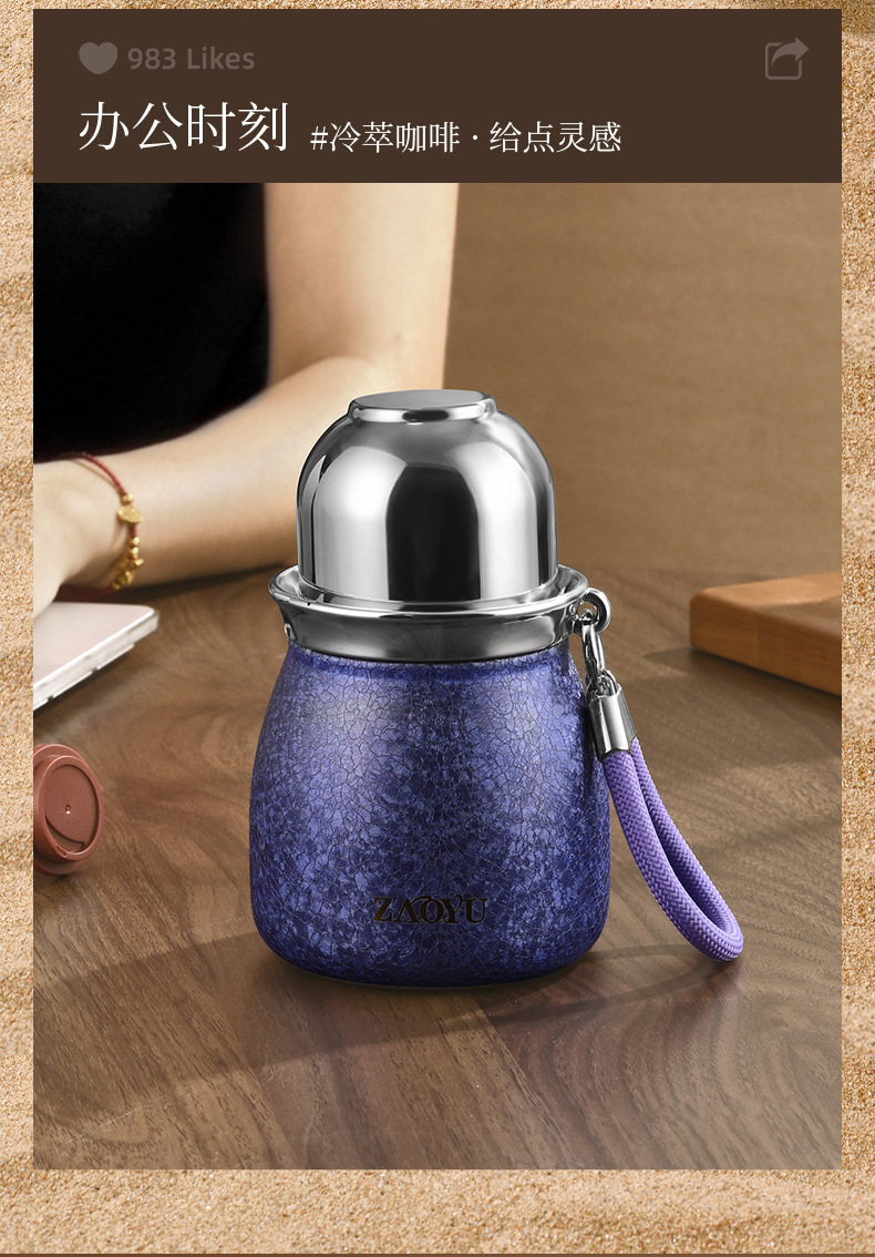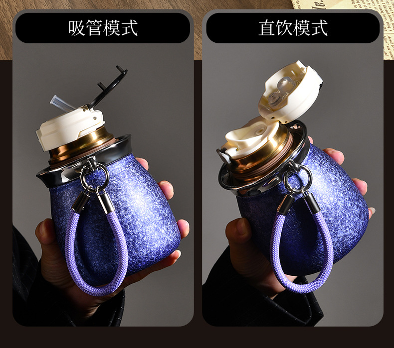 新款葫芦保温杯高档覆钛保温杯高颜值双饮吸管杯茶水分离旅行水杯