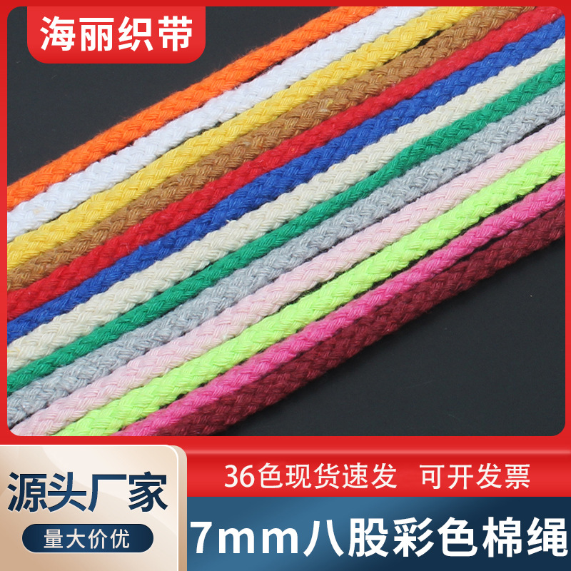7mm八股彩色棉绳子DIY手工编制辅料束口绳子裤带衣帽拉绳白色