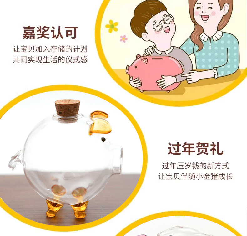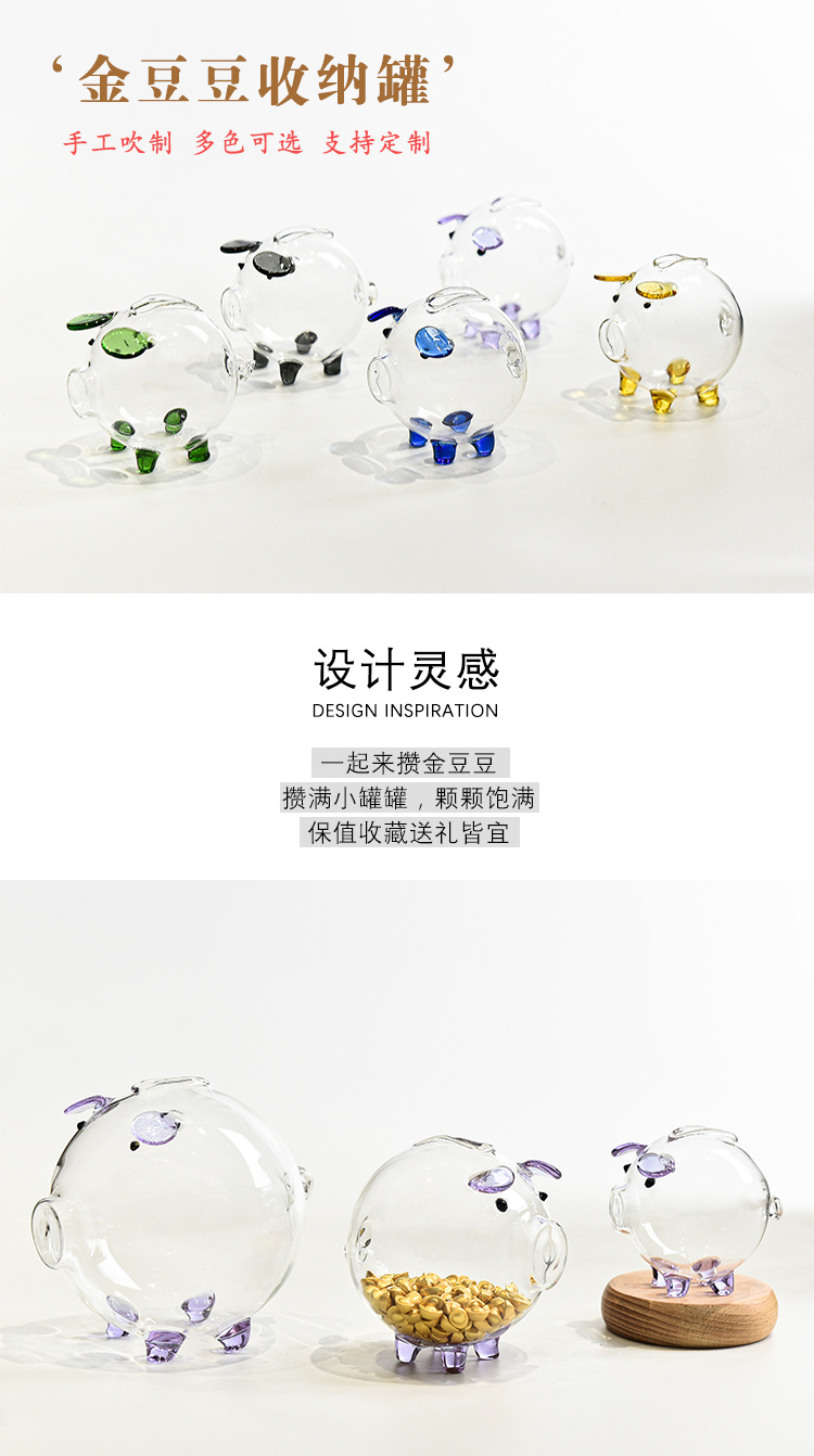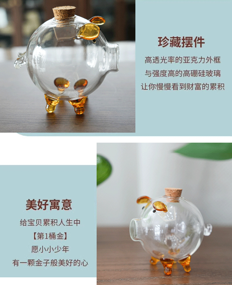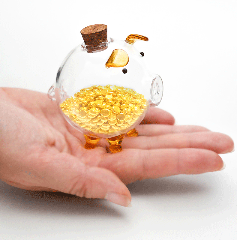 高硼硅玻璃迷你攒金豆子小猪存钱罐金豆豆收纳瓶许愿瓶厂家批发