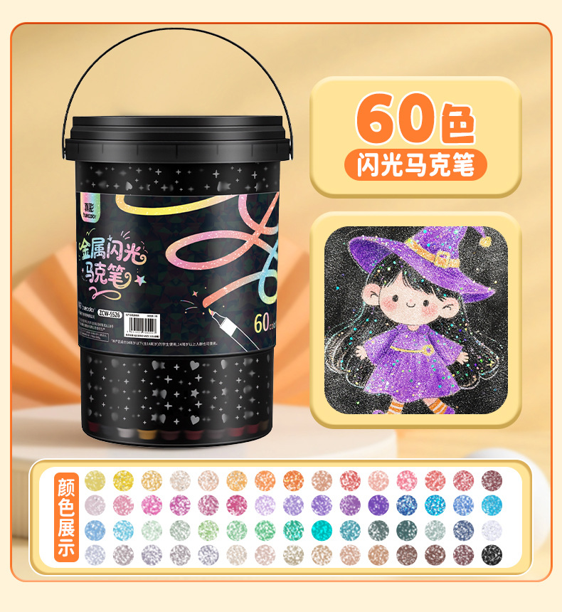 真彩闪光马克笔儿童荧光笔闪光笔小学生软头画画手账标记流沙笔