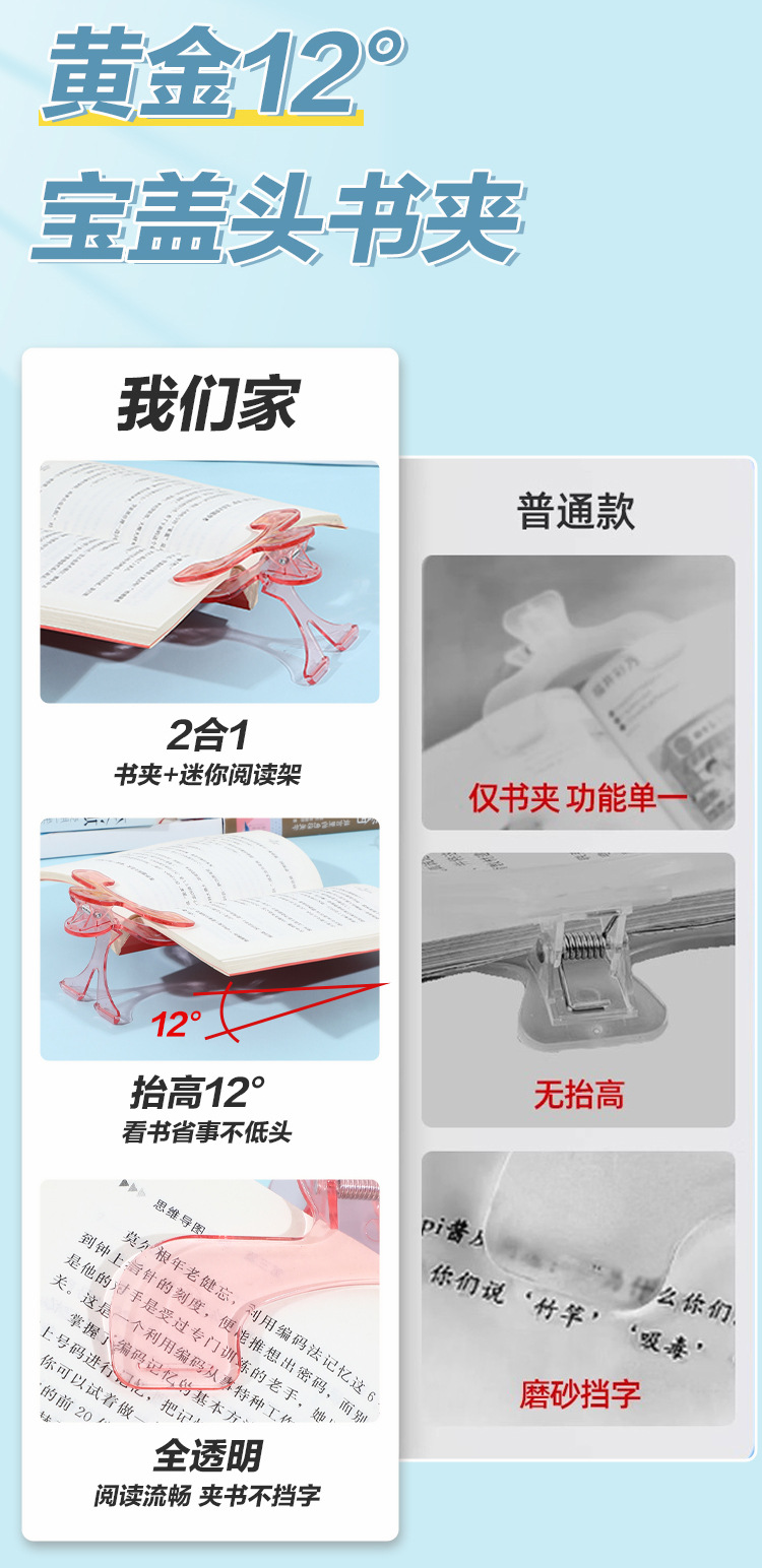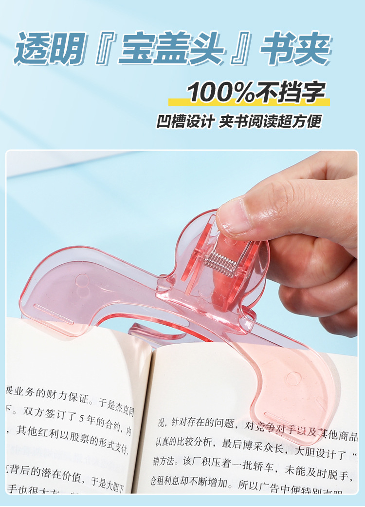 跨境宝盖头书夹透明便签夹固定书本夹学生阅读防书翻页夹资料夹子