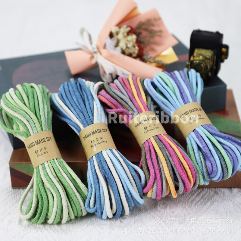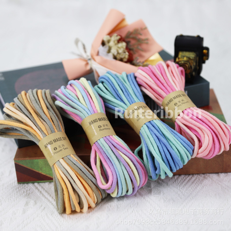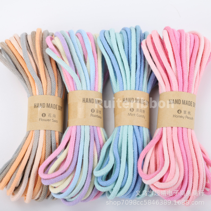 3mm渐变七彩包芯棉绳饰品手链绳diy手工编绳编织圆绳猫爬架直销
