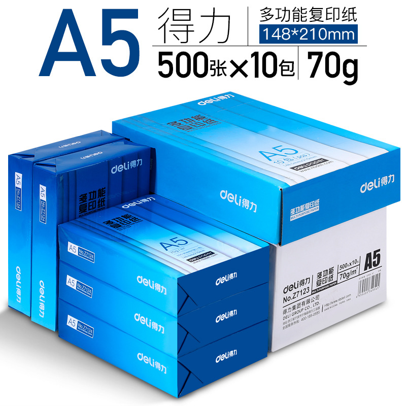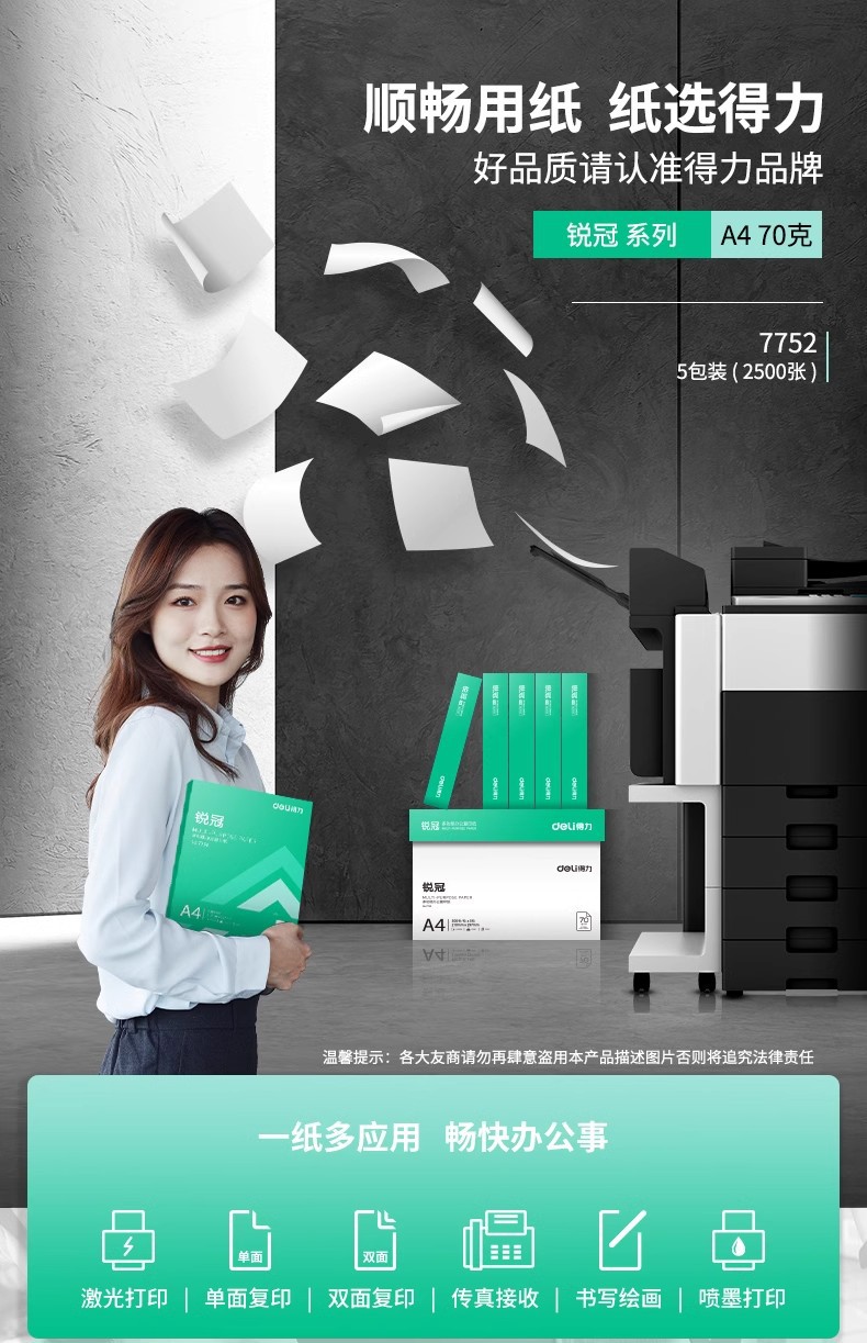 得力a4纸打印复印纸a4打印纸2500张整箱双面白纸草稿纸佳宣莱茵河
