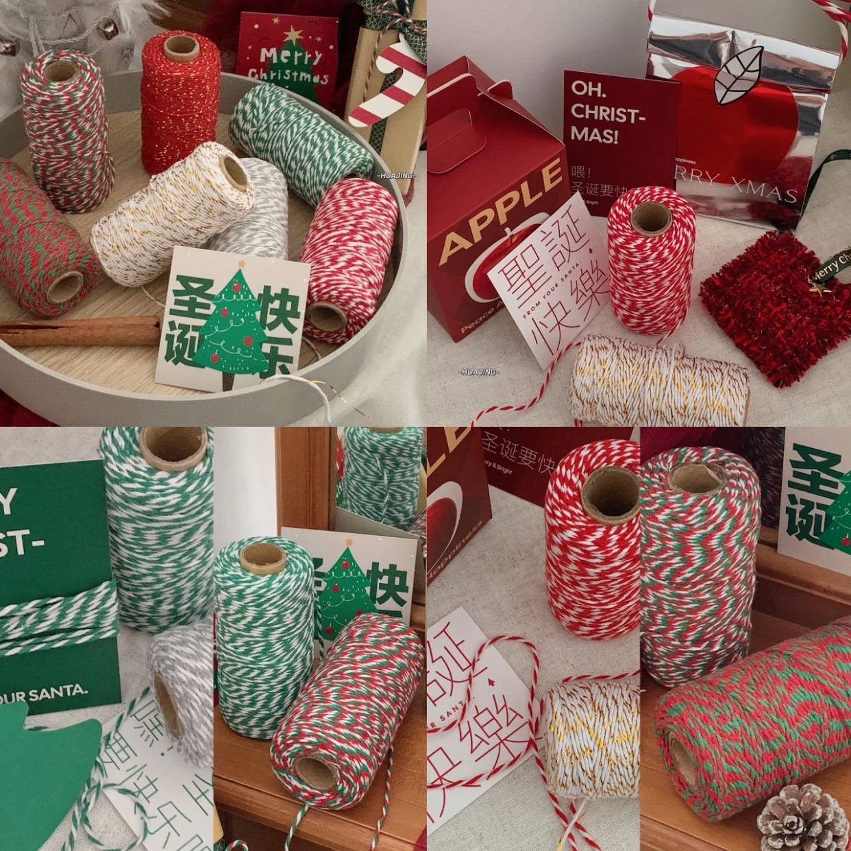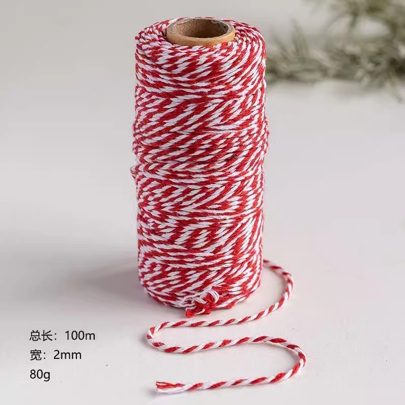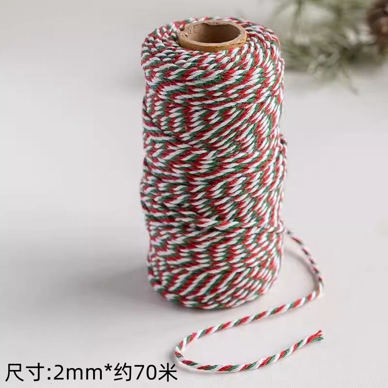 跨境圣诞节彩色棉麻绳子 手工diy编织双色麻绳圣诞礼物包装盒绑带