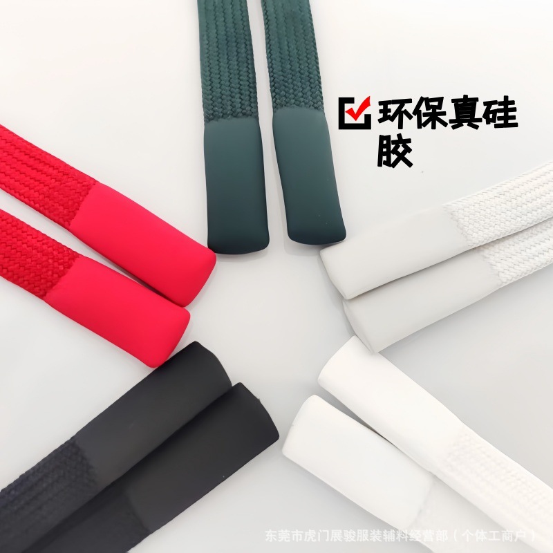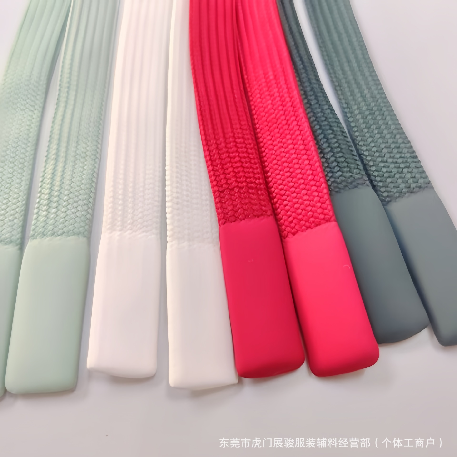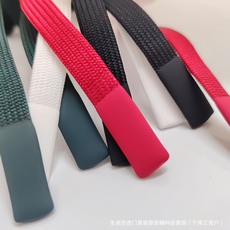 1CM宽环保滴胶硅胶绳子pvc扁绳浸胶头印字彩色编织绳棉绳加LOGO