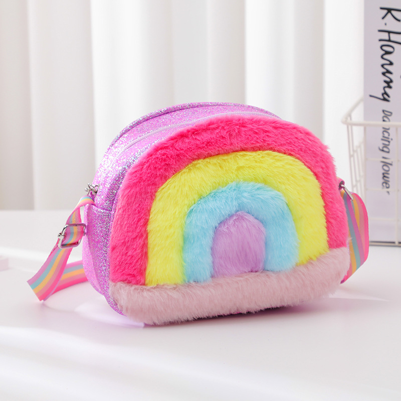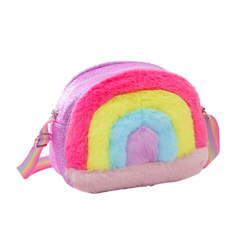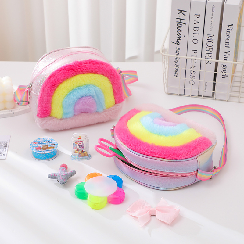 彩虹小背包卡通珠片可爱包儿童爱心新款格利特彩带彩虹单肩包星星