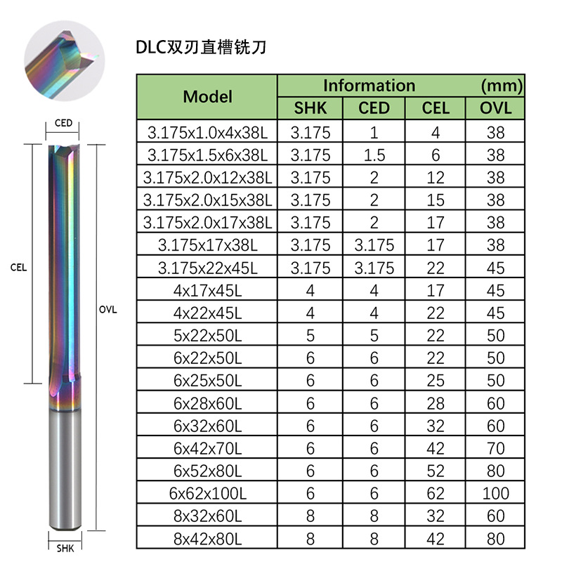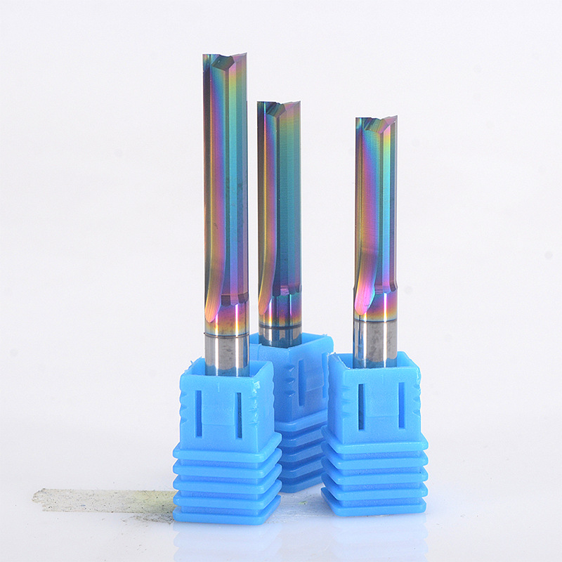 3.175-8mmDLC双刃直槽铣刀彩色涂层数控木工铣刀密度板雕刻刀