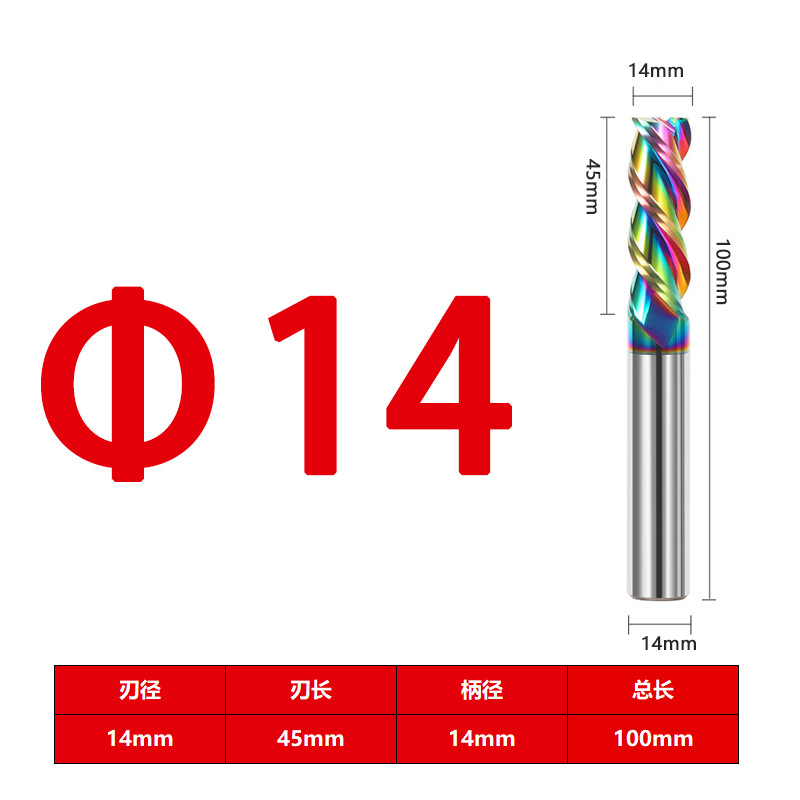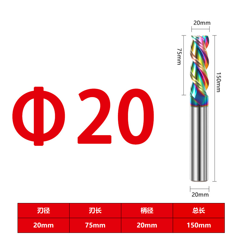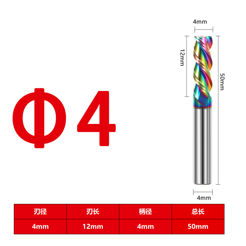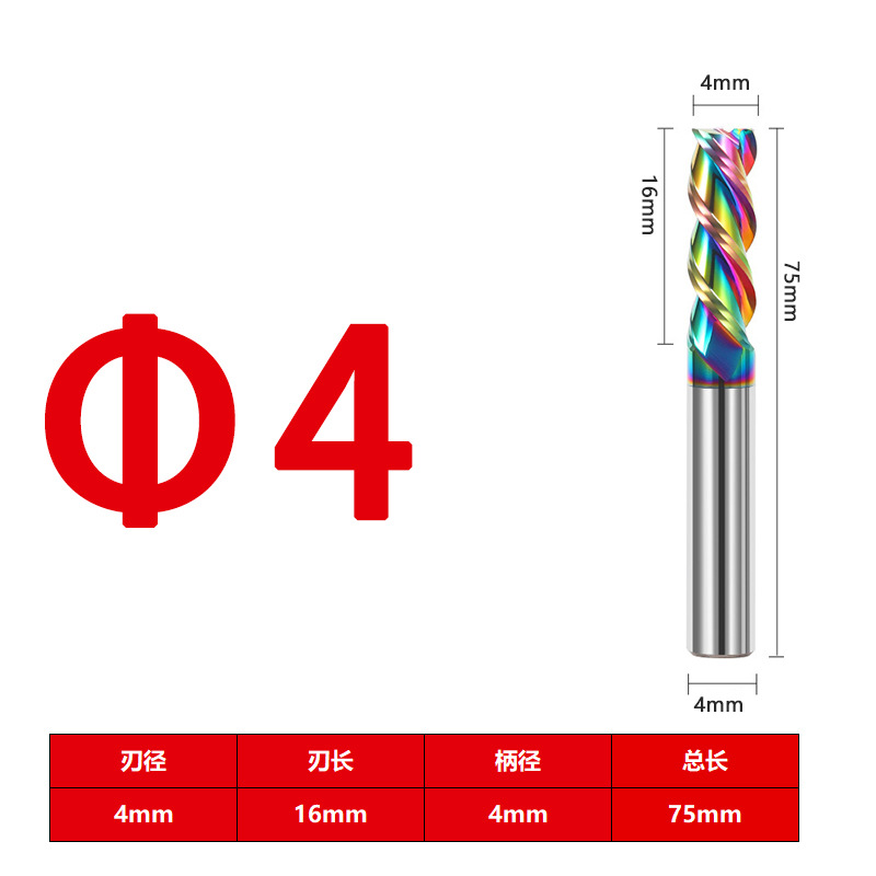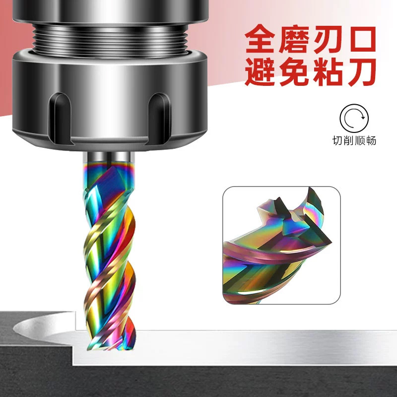 55度铝用立铣刀3刃七彩高光钨钢硬质合金加长三刃铣铝专用CNC数控