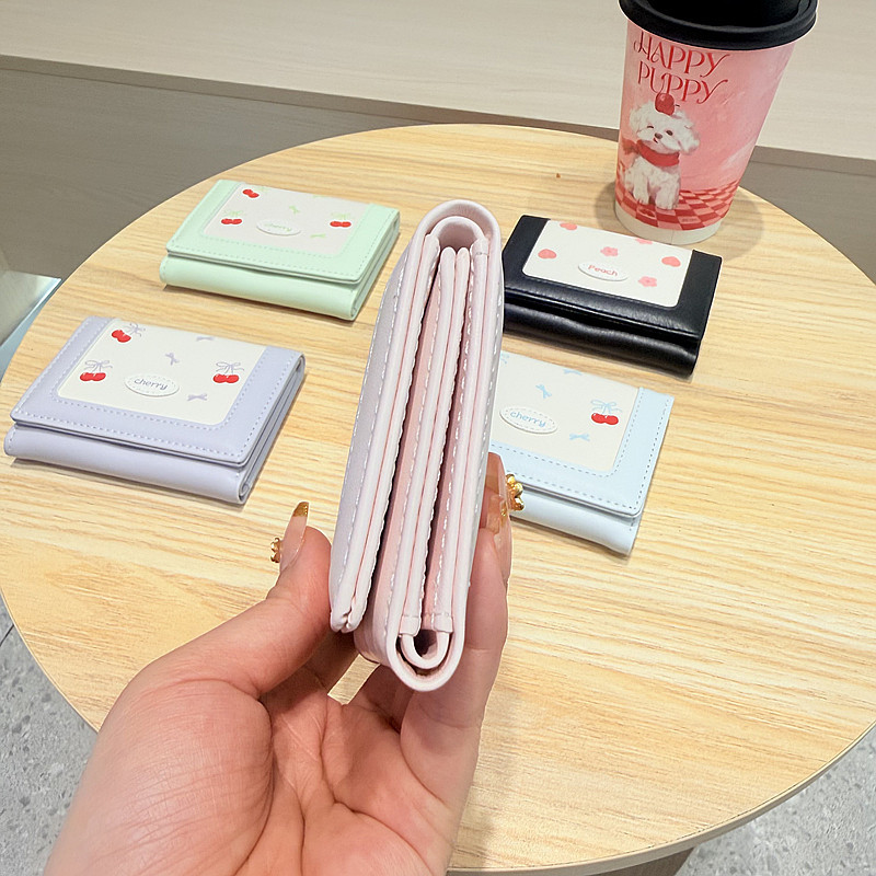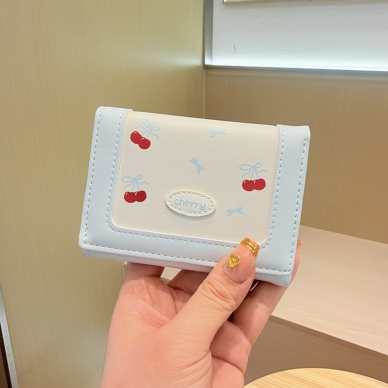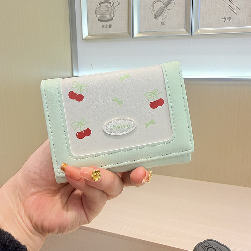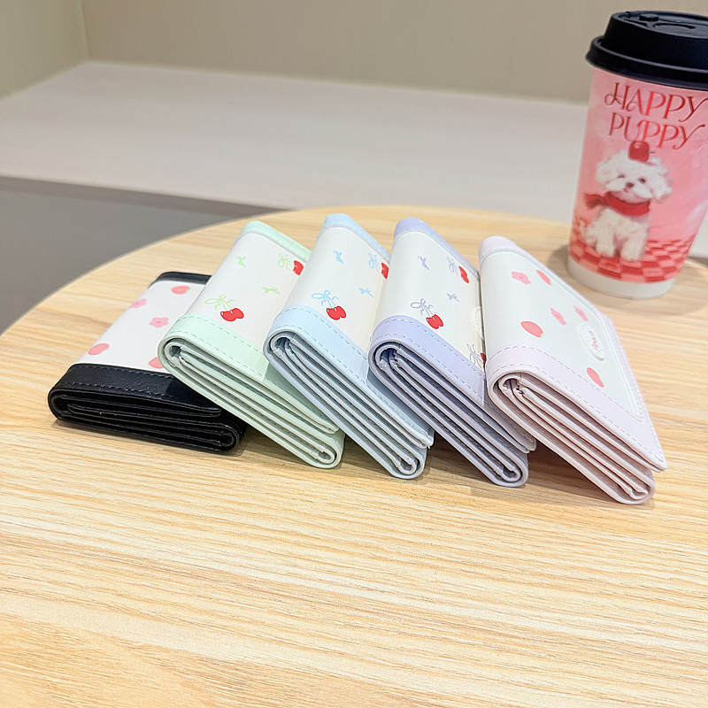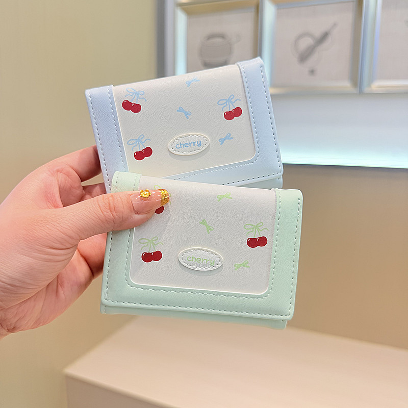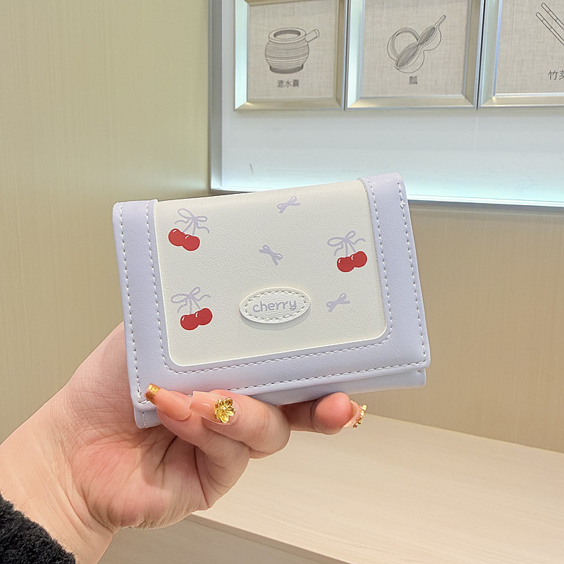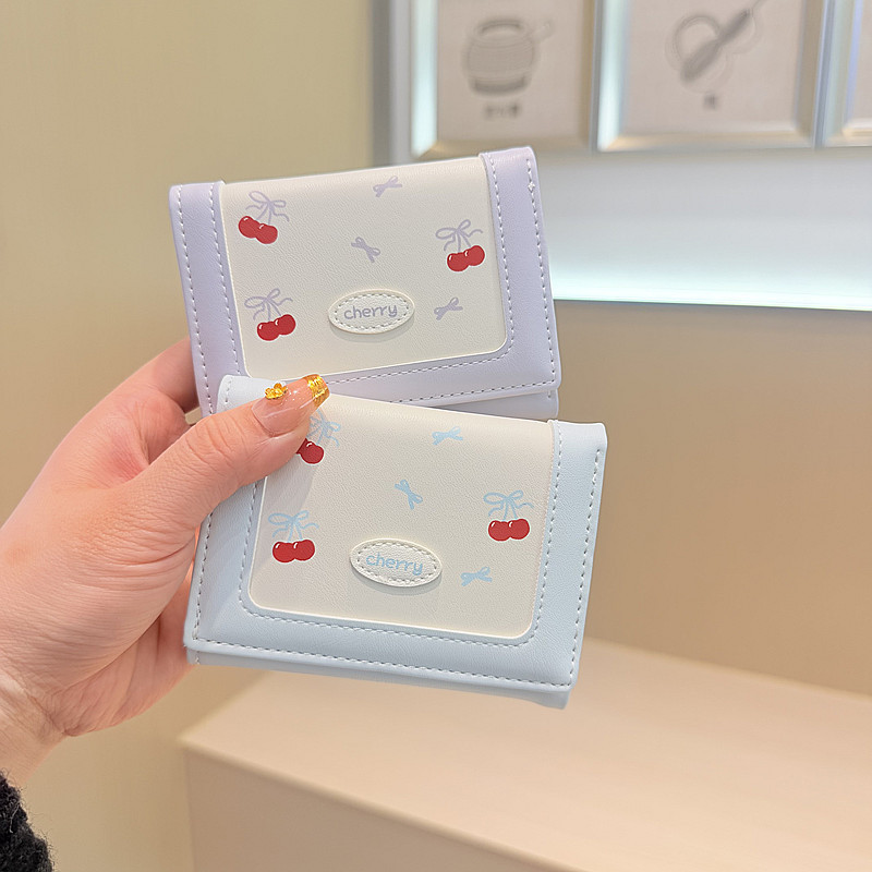 韩版新款夏季清新樱桃印花三折短款钱包小巧迷你学生薄款女士钱包
