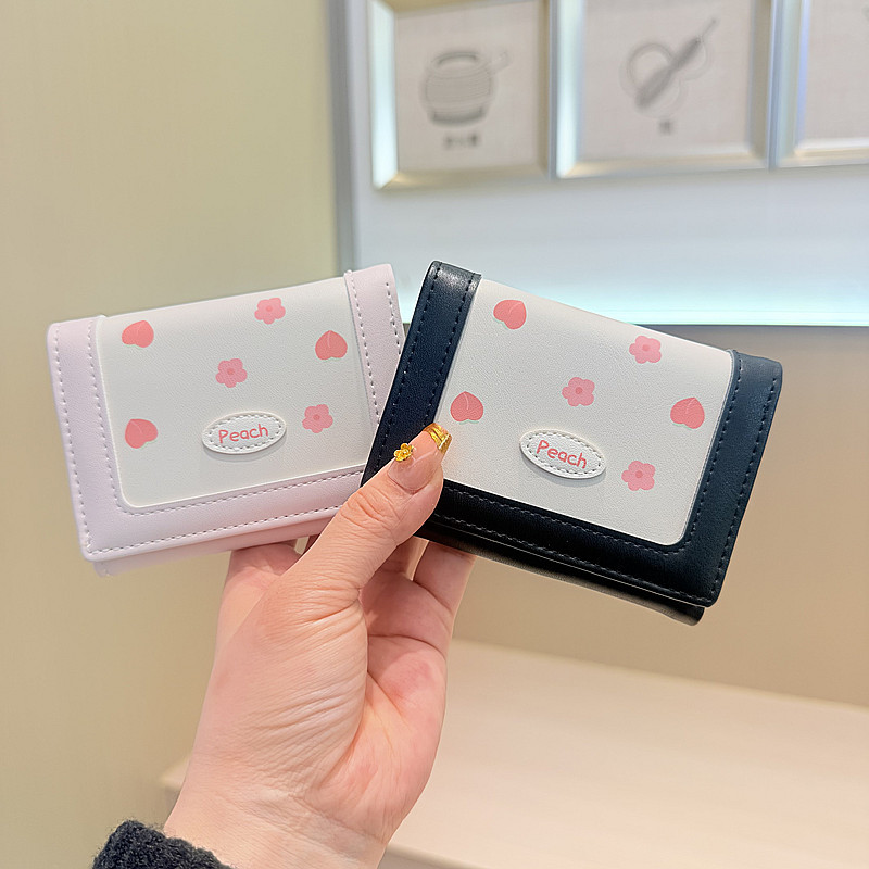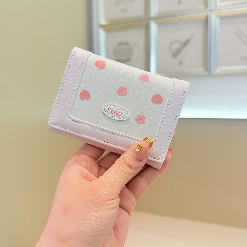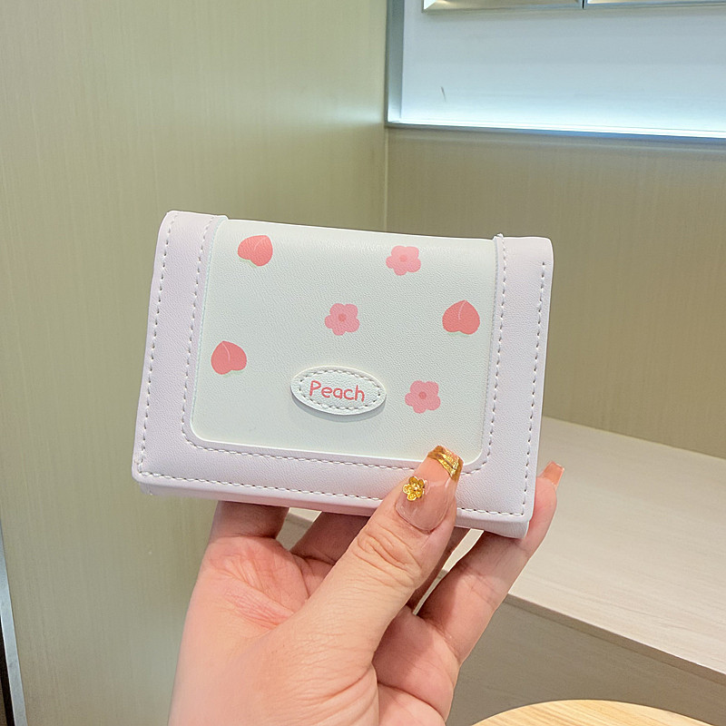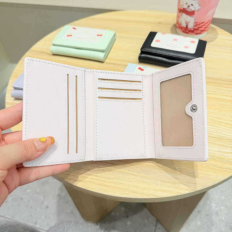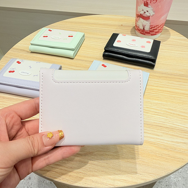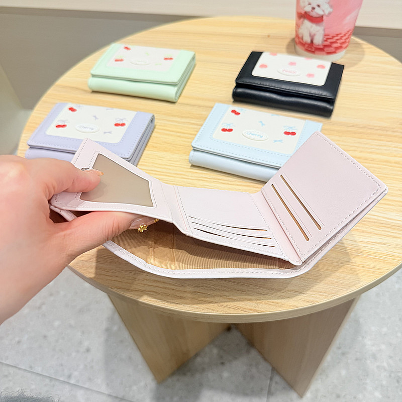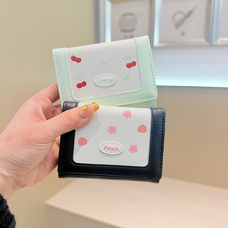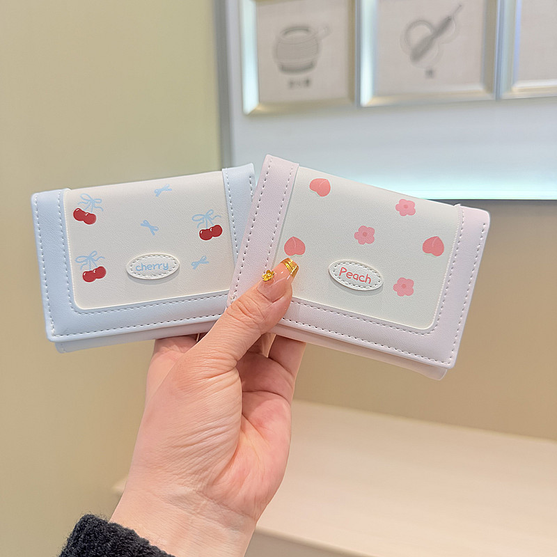韩版新款夏季清新樱桃印花三折短款钱包小巧迷你学生薄款女士钱包