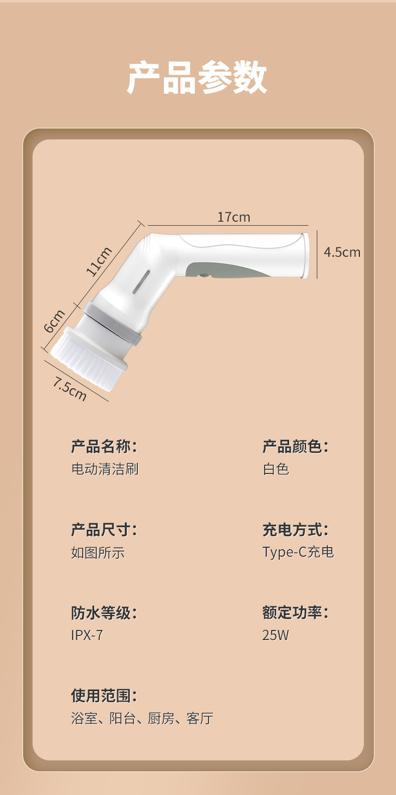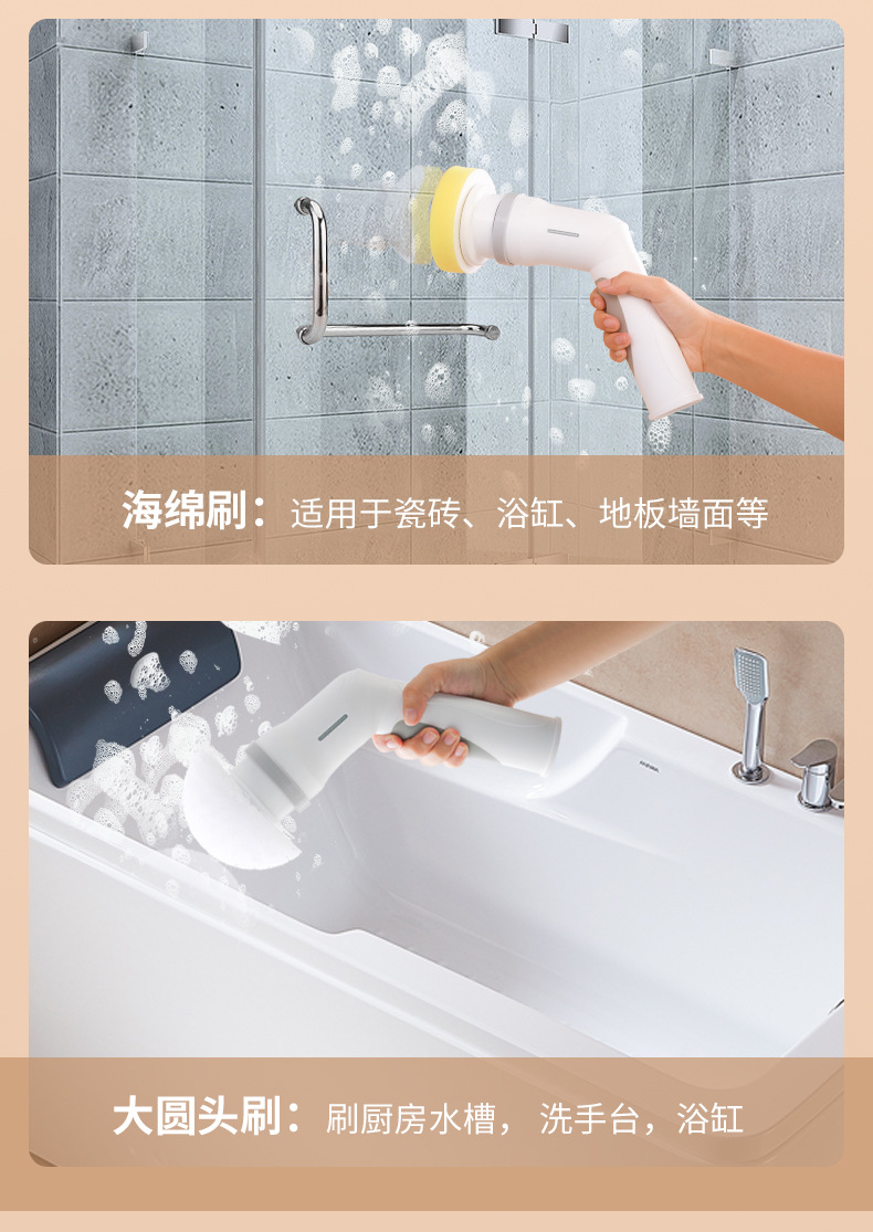 短款大功率电动清洁刷无线手持电动旋转刷厨房地板玻璃洗碗刷子