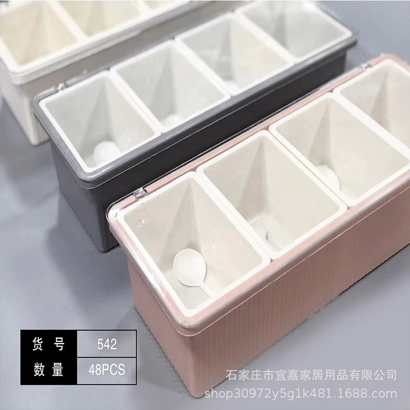 创意厨房调味瓶调味罐塑料套装味精盐盒四格式带勺组合翻盖调料盒