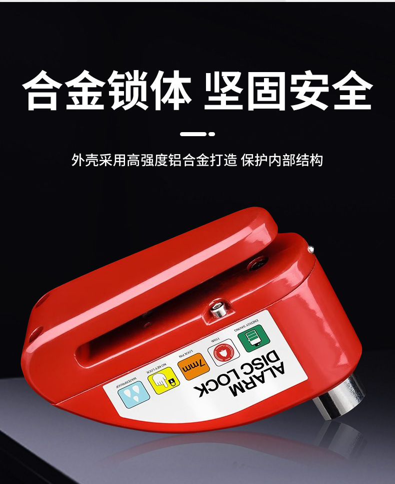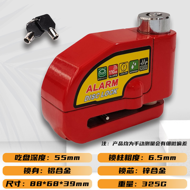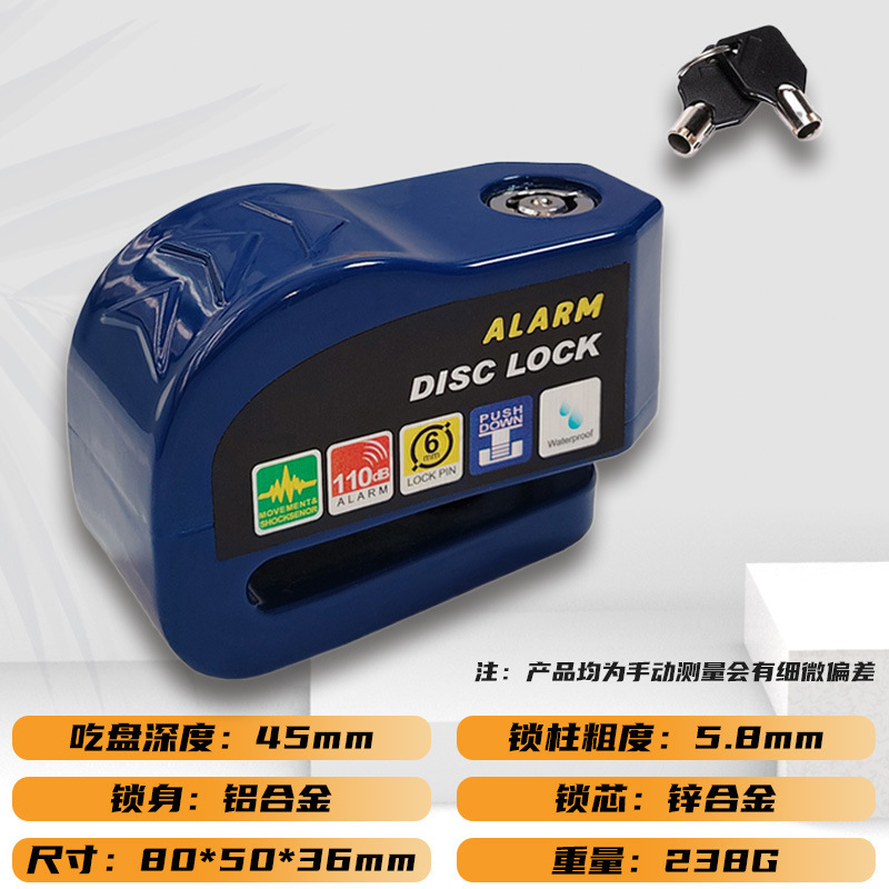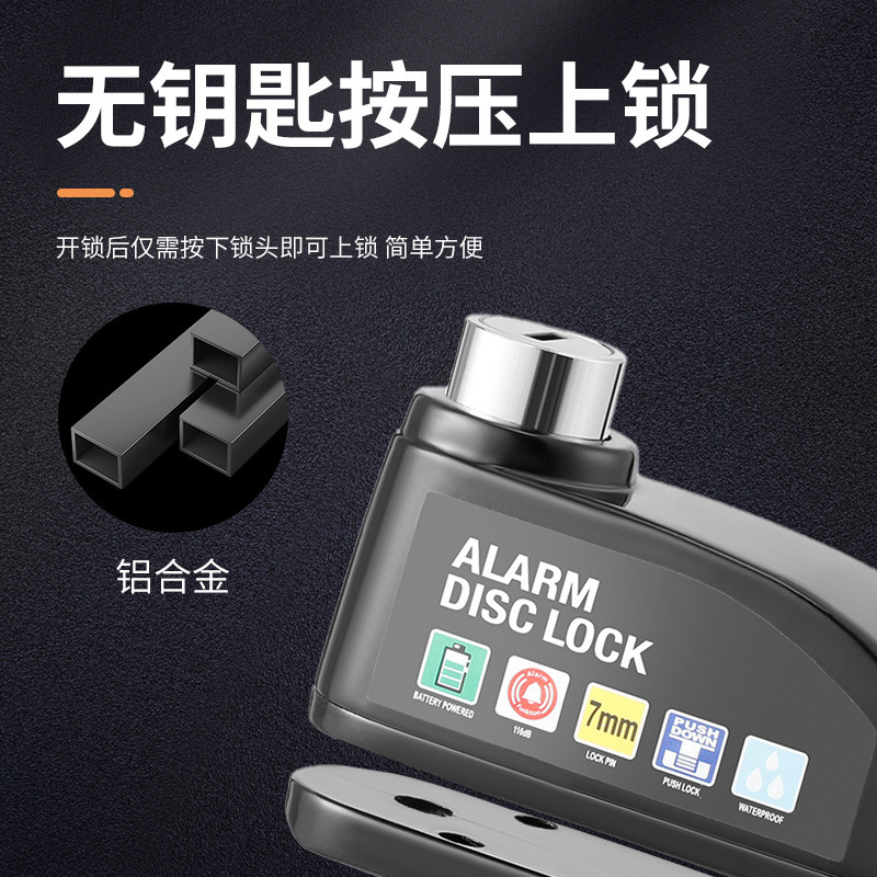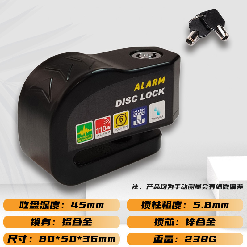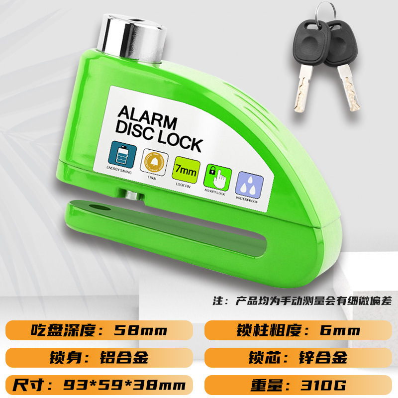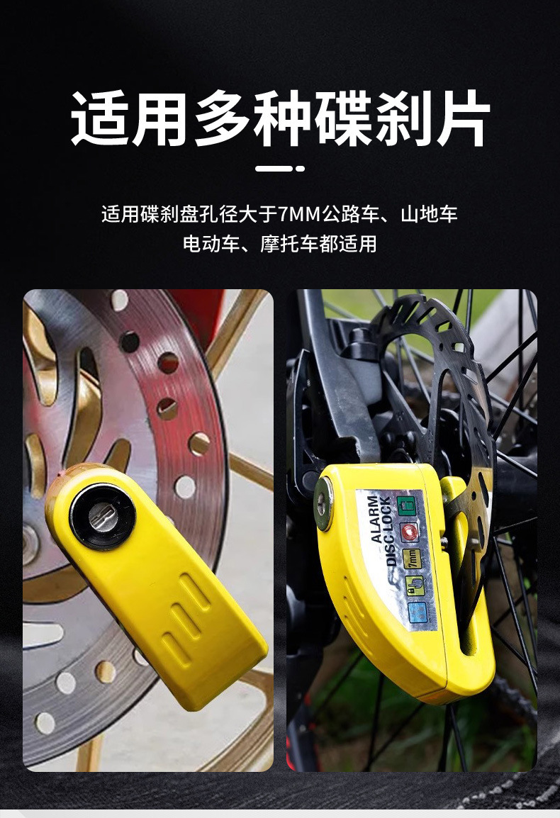 自行车碟刹锁电动车电瓶摩托车刹车盘卡锁合金防水防锈防盗警报锁