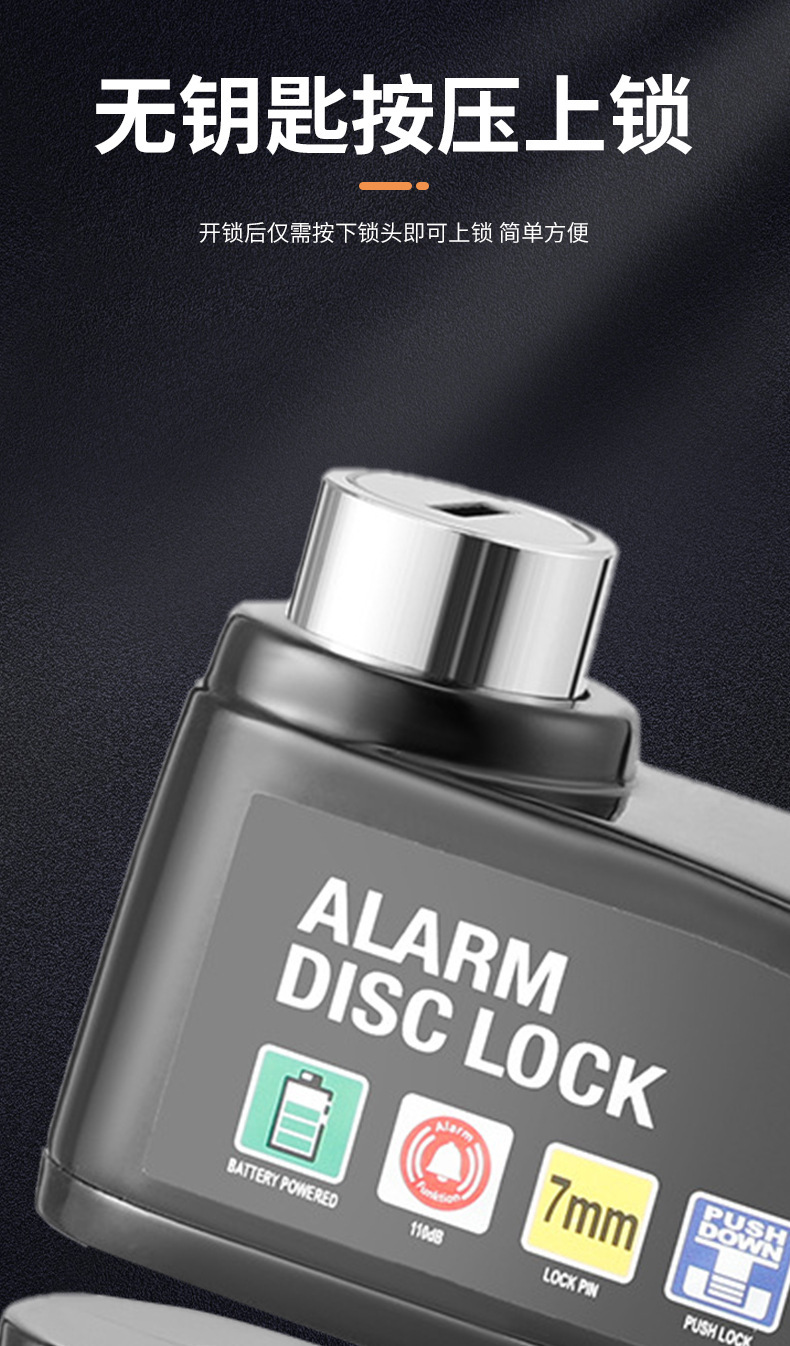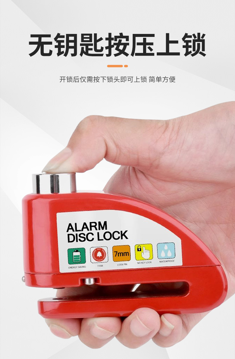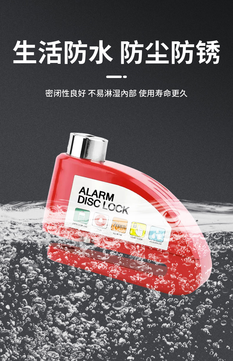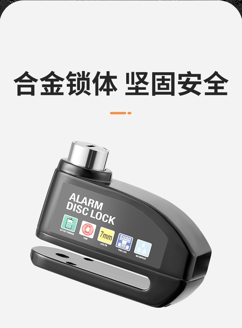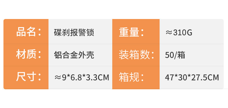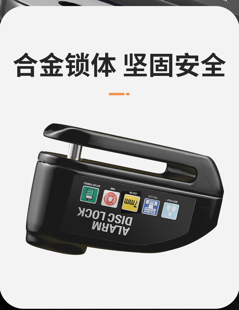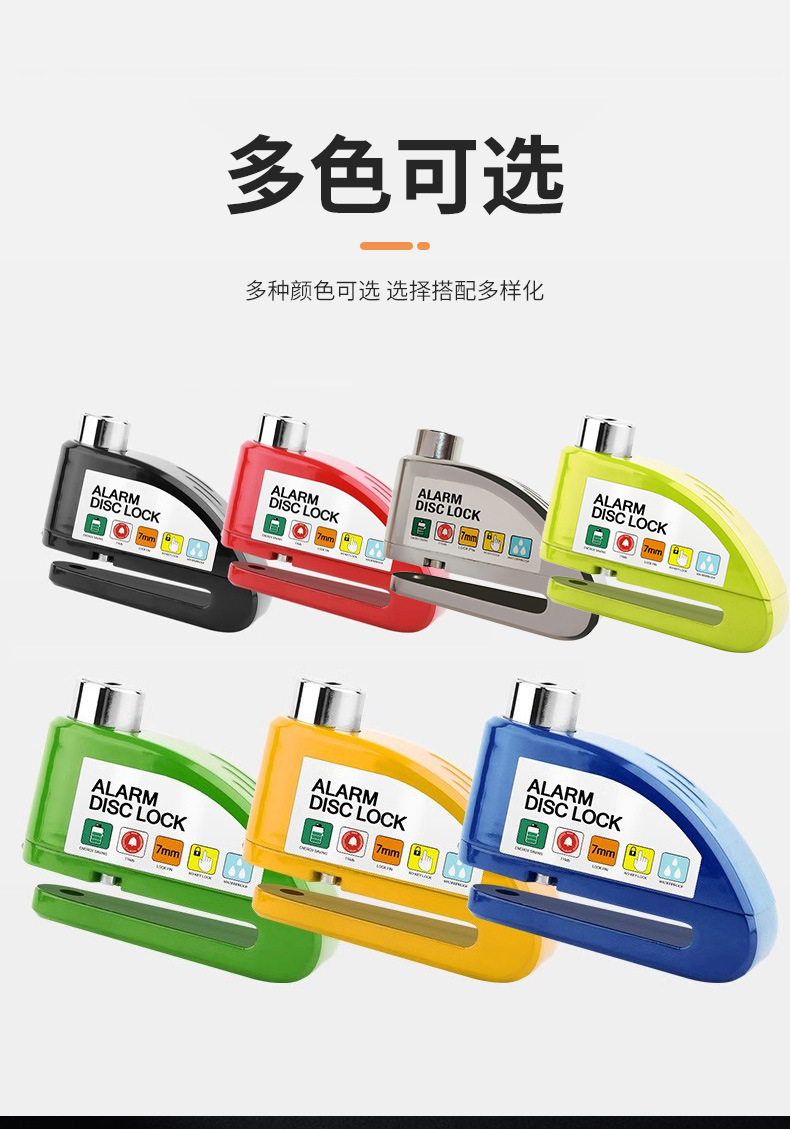 自行车碟刹锁电动车电瓶摩托车刹车盘卡锁合金防水防锈防盗警报锁