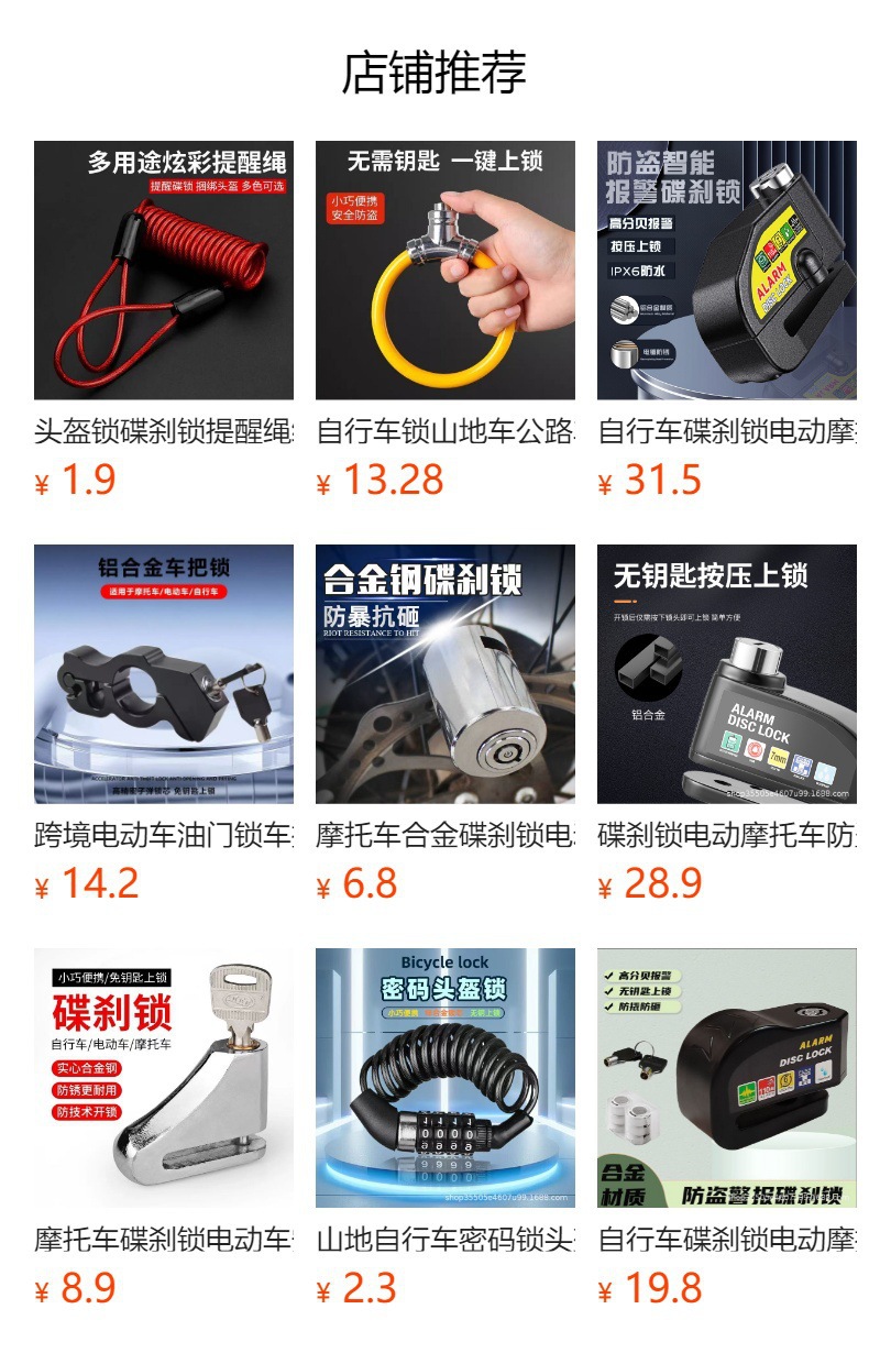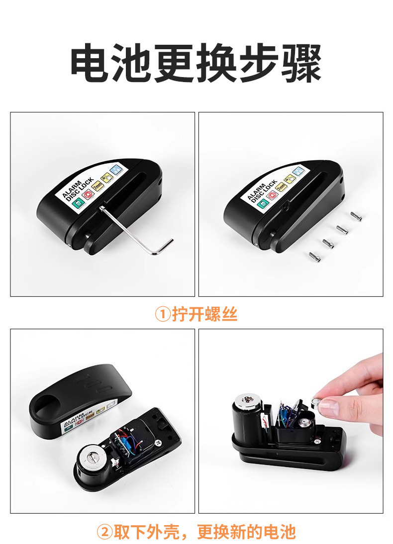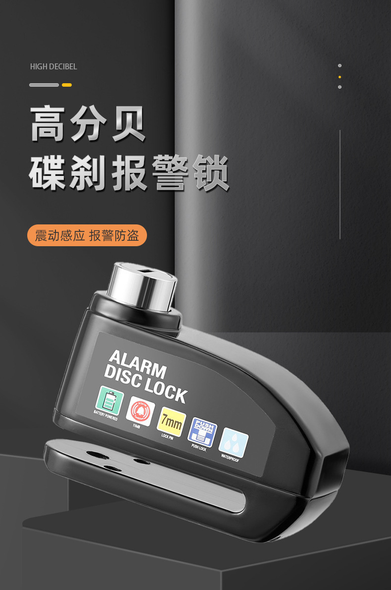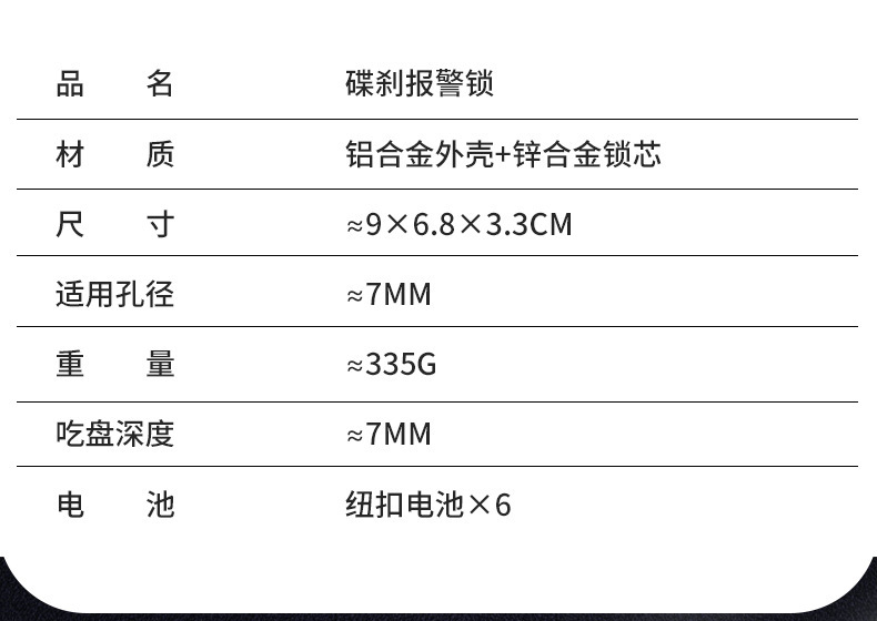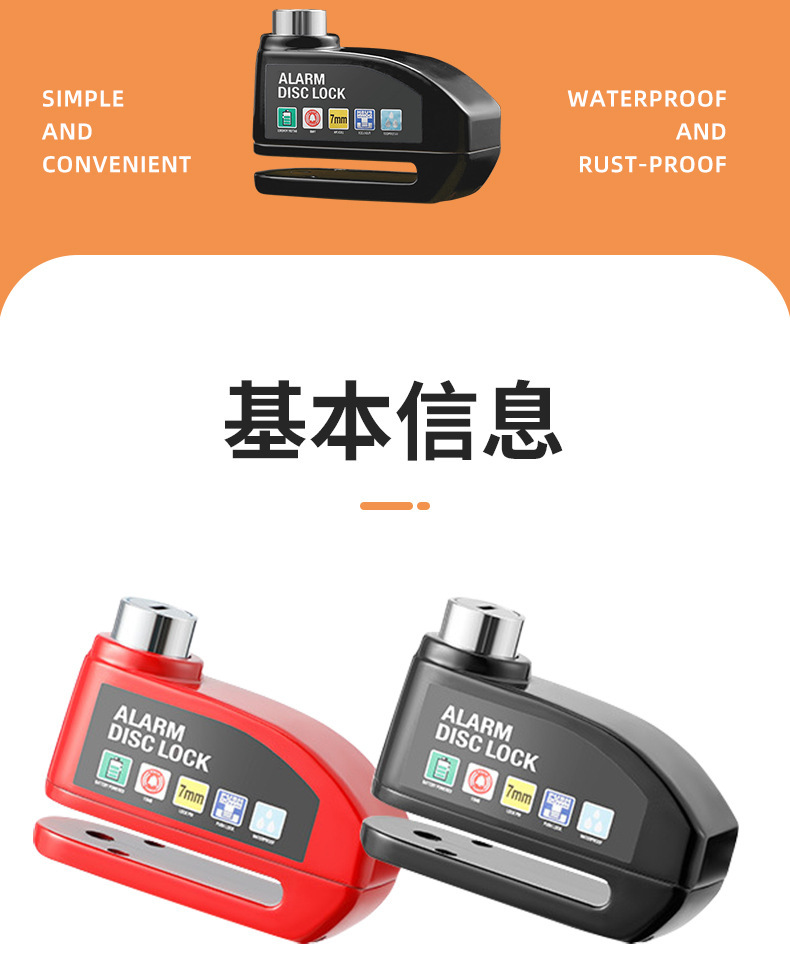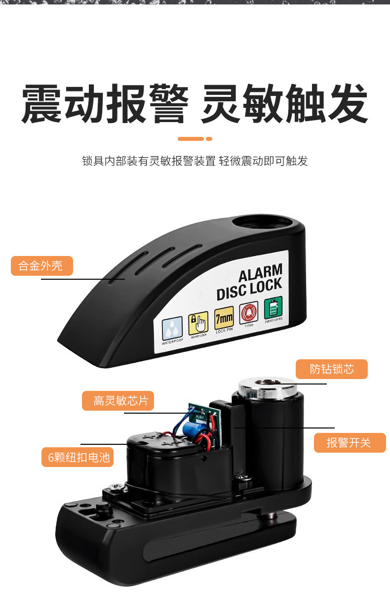 自行车碟刹锁电动车电瓶摩托车刹车盘卡锁合金防水防锈防盗警报锁