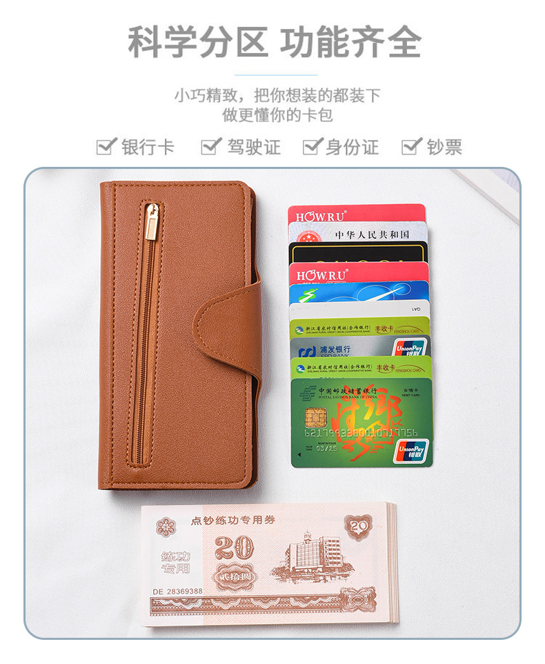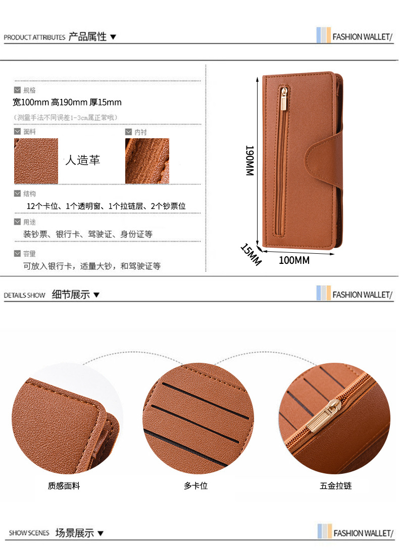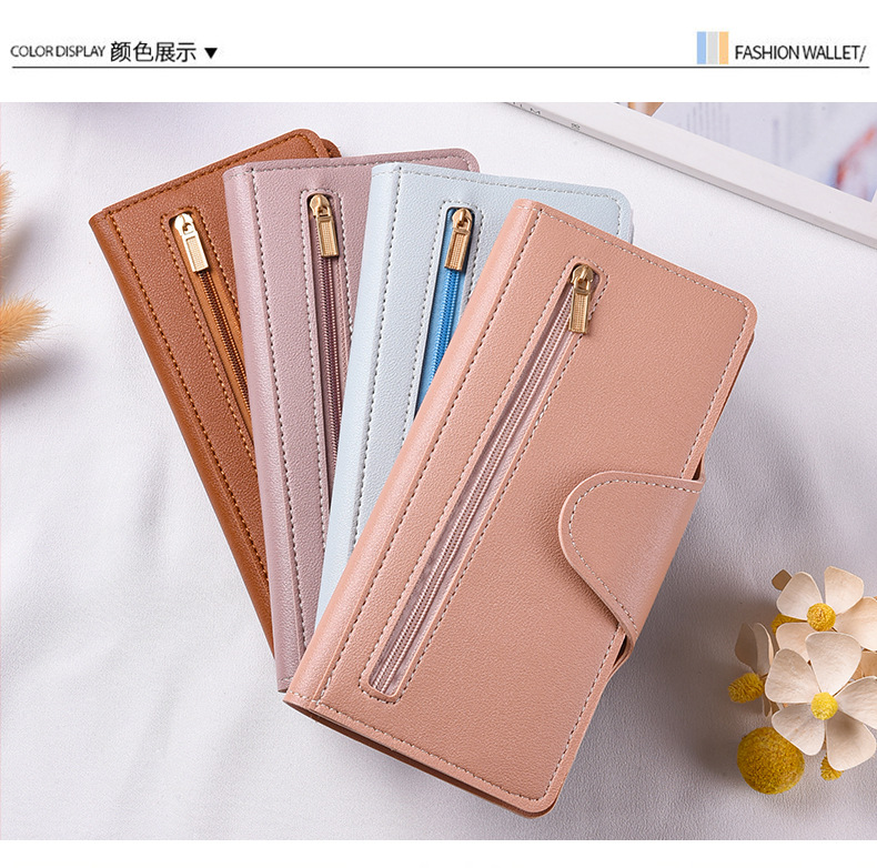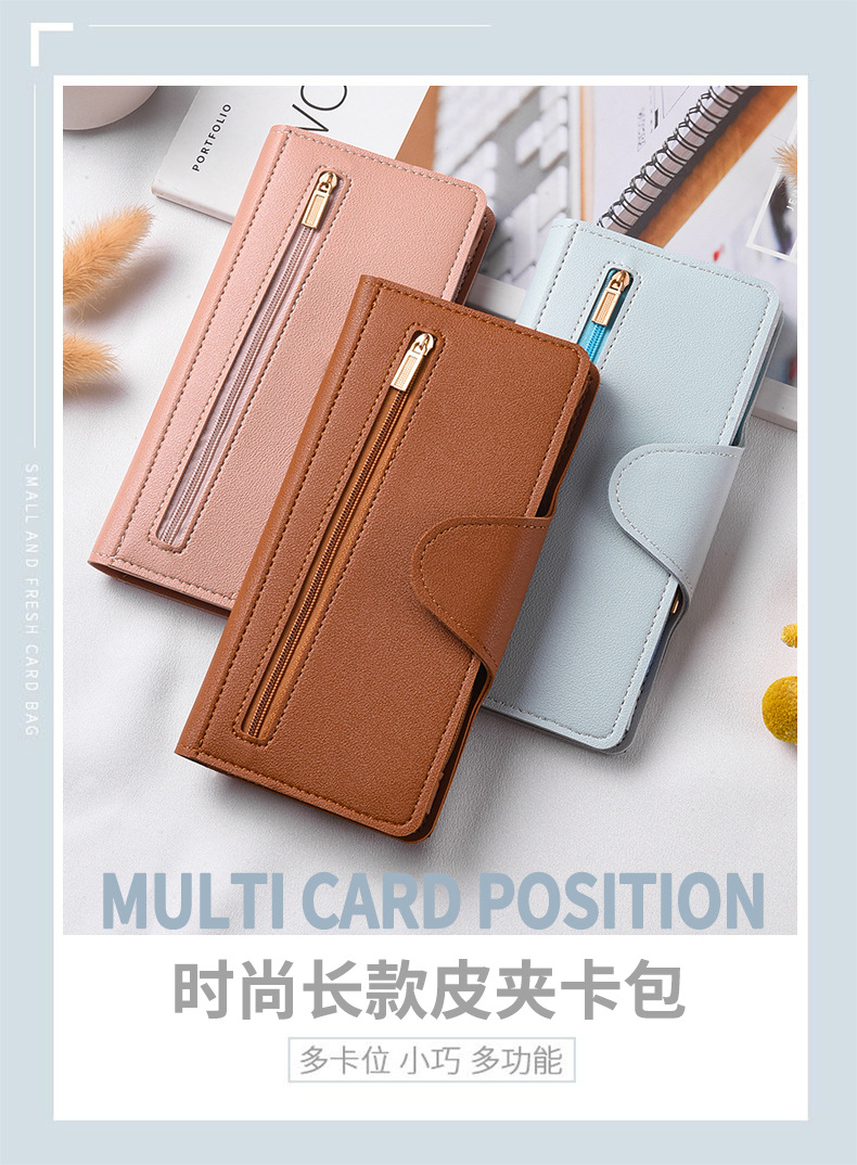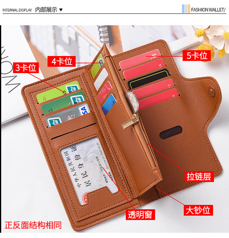 跨境新款女士钱包长款多功能时尚拉链搭扣零钱包卡包大容量手拿包