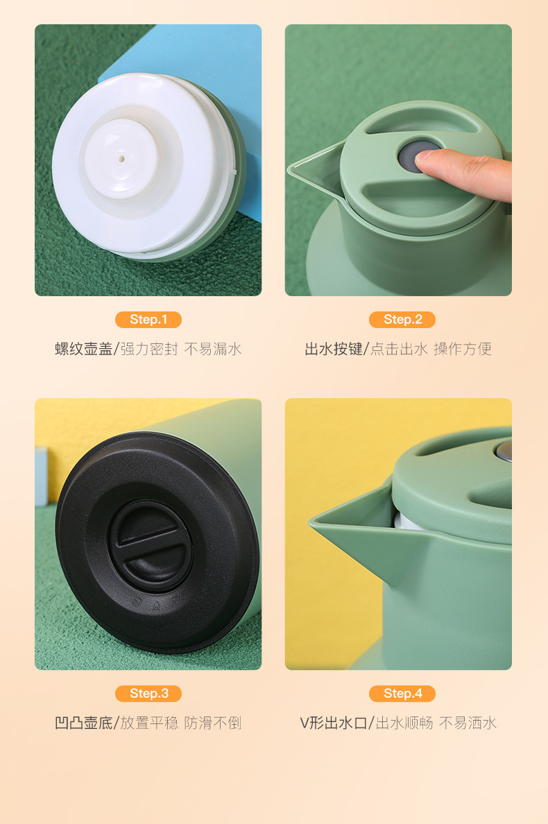 真空保温壶家用小热水瓶女木柄保温瓶北欧咖啡壶便携保温水壶印字