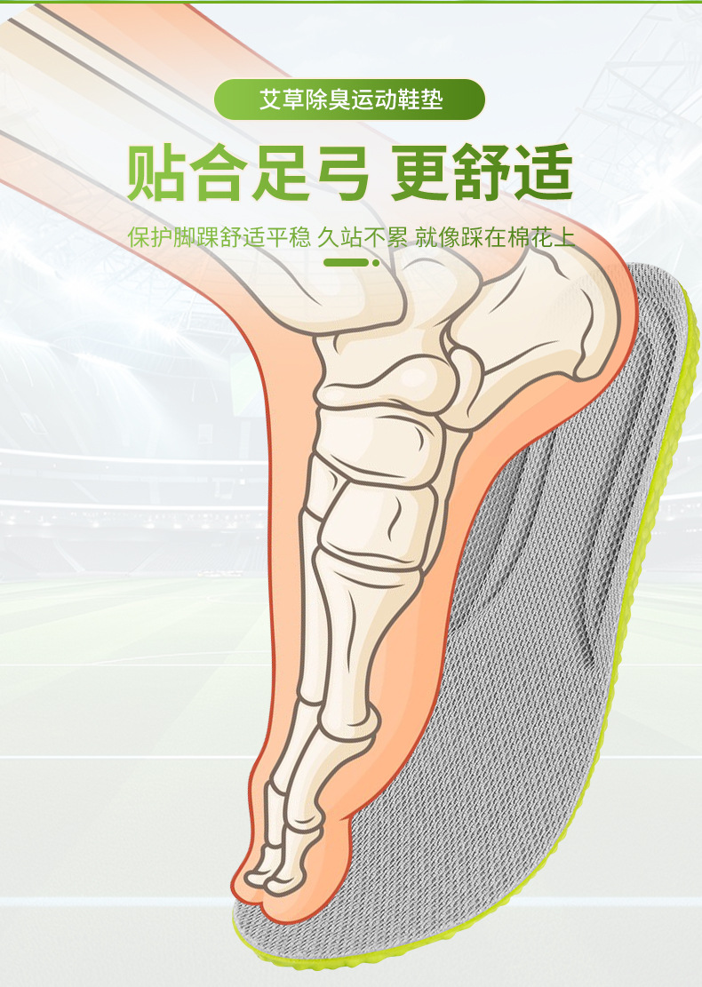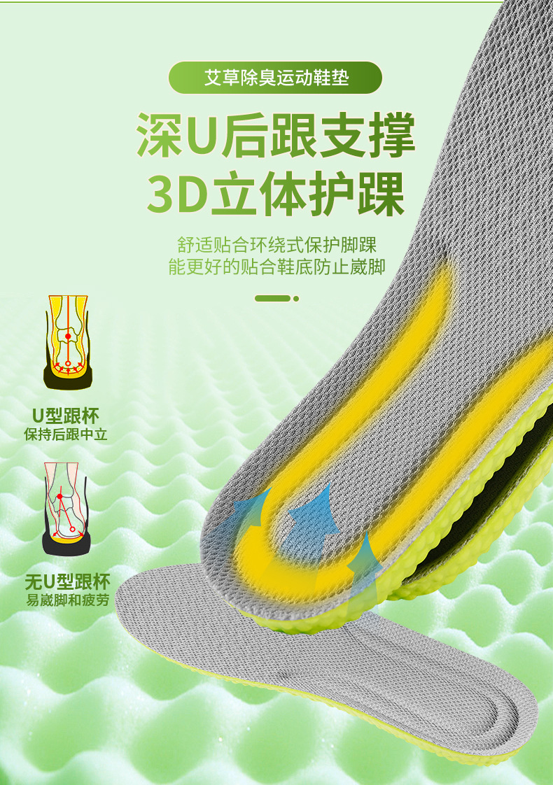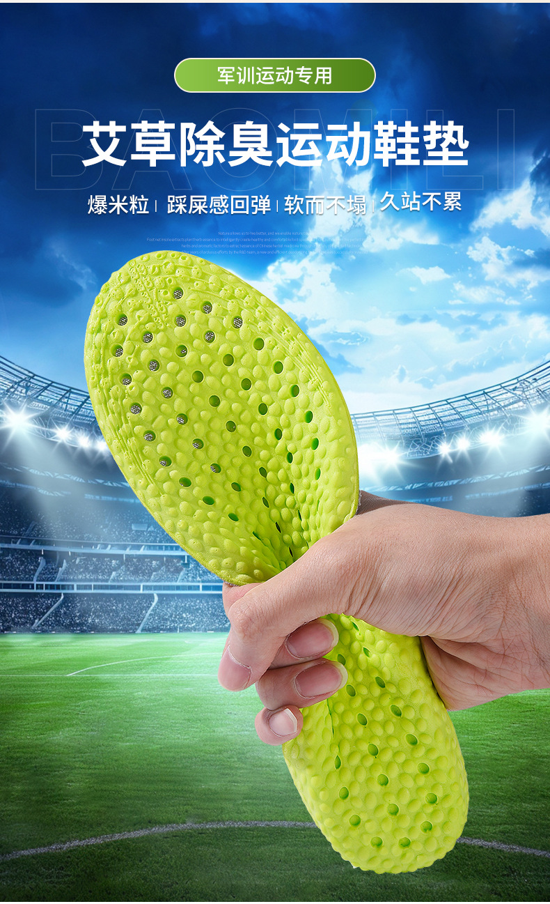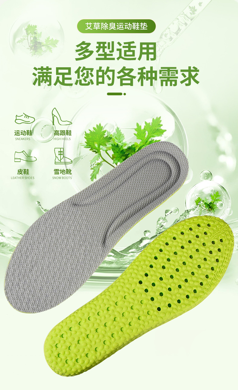 艾草踩屎感防臭运动鞋垫吸汗透气柔软舒适男女通用软垫子定制