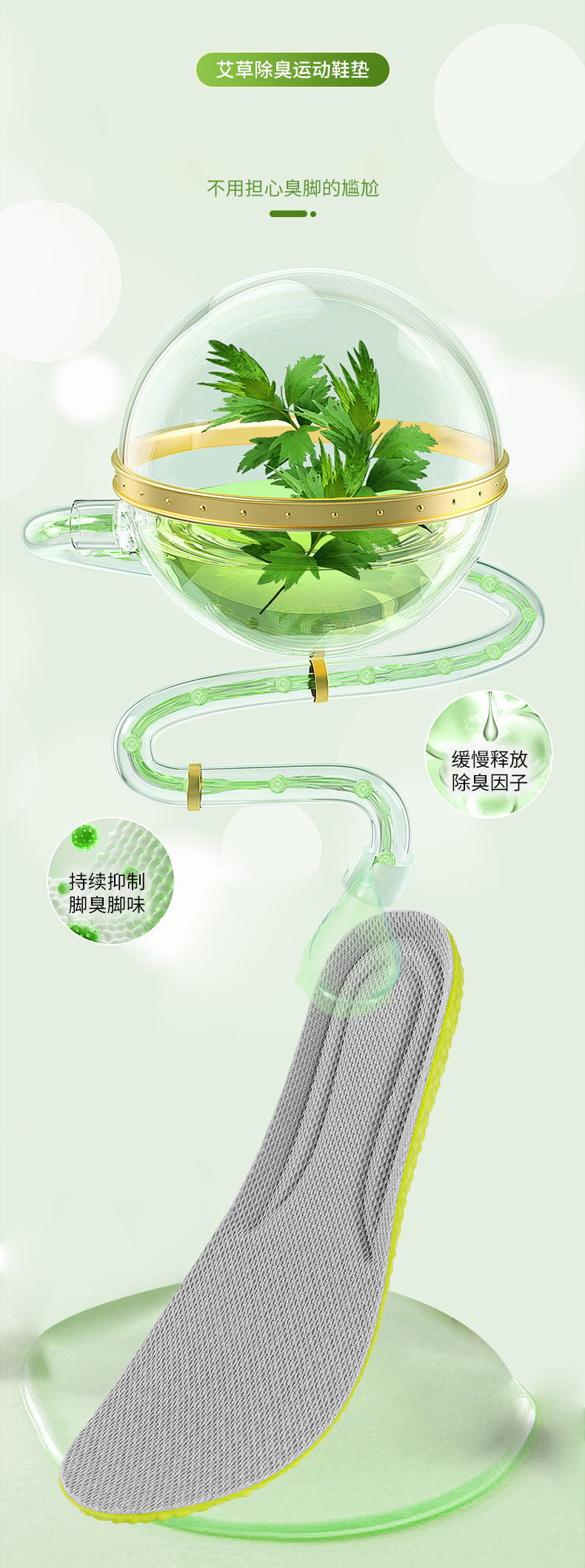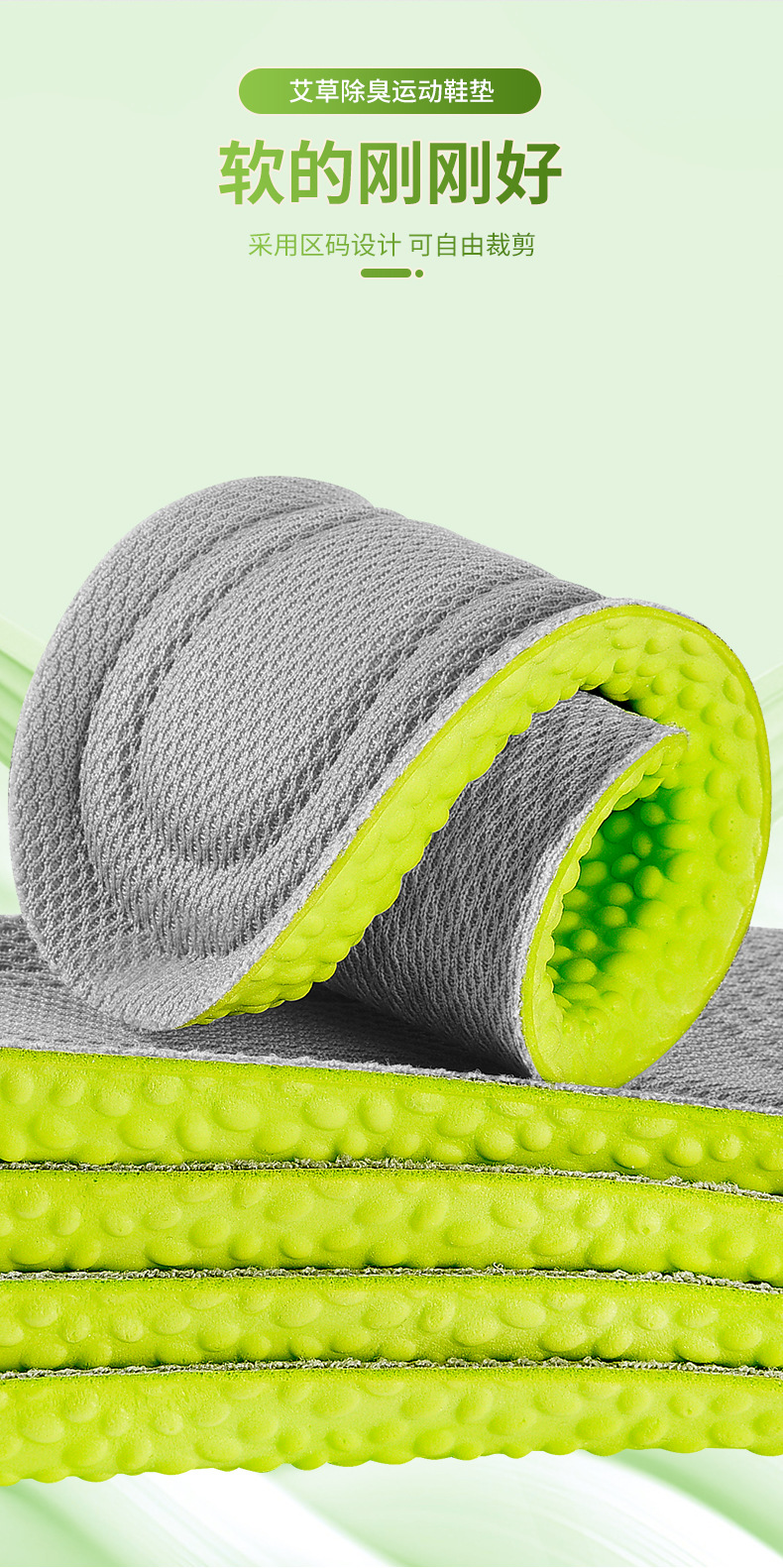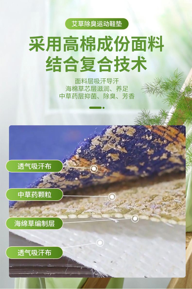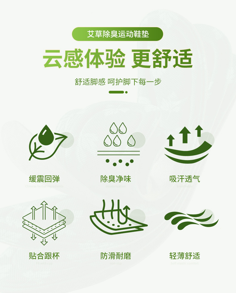 艾草踩屎感防臭运动鞋垫吸汗透气柔软舒适男女通用软垫子定制