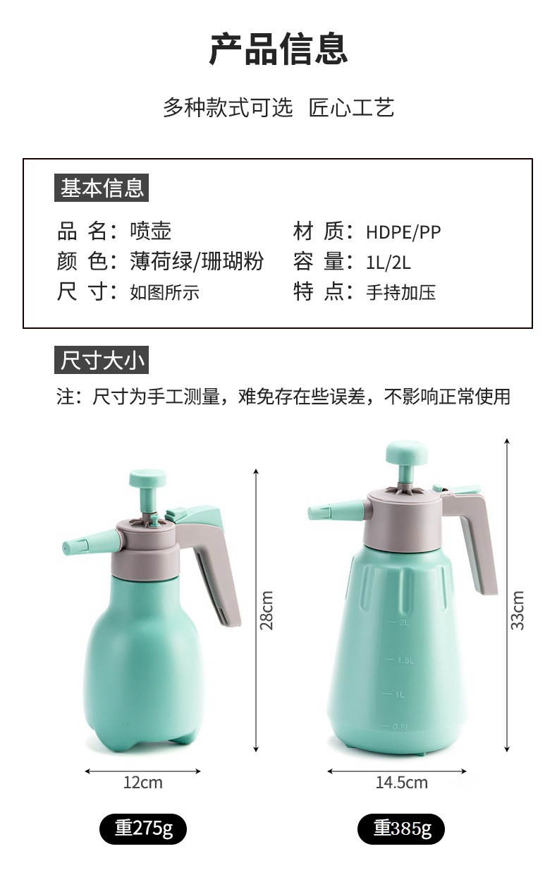 现货跨境加厚喷壶浇花清洁消毒专用喷雾壶家用园艺1L2L高压喷水壶