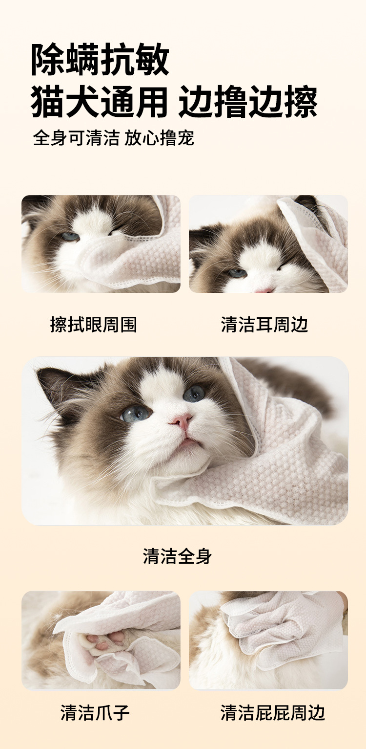 宠物免洗手套湿巾猫咪专用狗狗清洁干洗神器小猫洗澡猫用湿巾定制