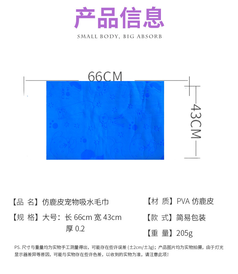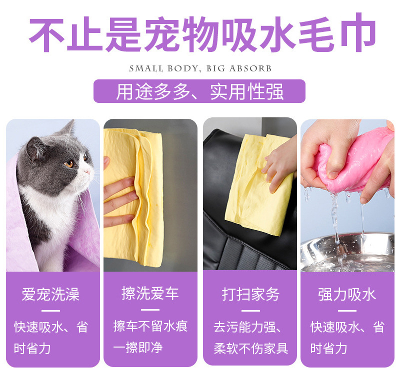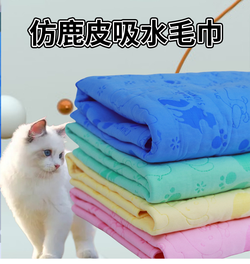 吸水毛巾宠物洗澡速干猫咪浴巾清洁用品柔软加厚仿鹿皮宠物毛巾