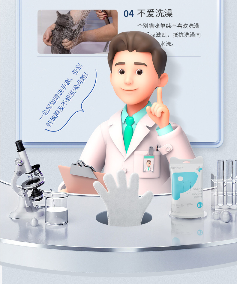 宠物免洗手套一次性洗澡神器宠物清洁用品除臭干洗猫咪狗狗湿巾