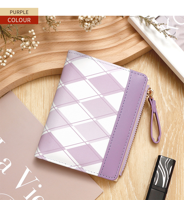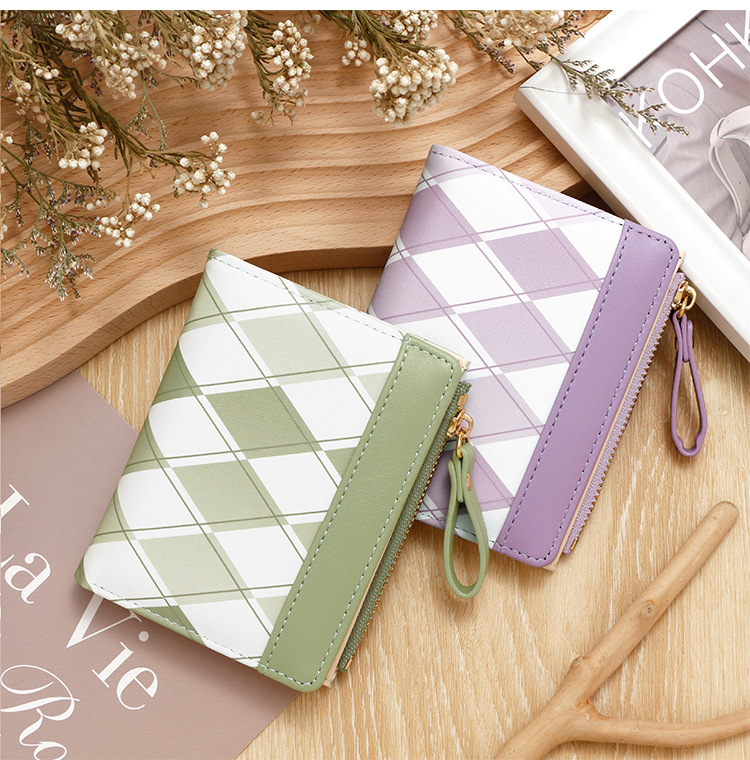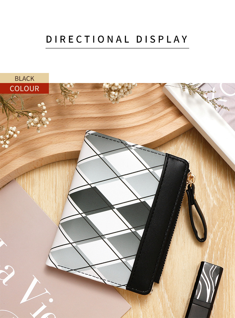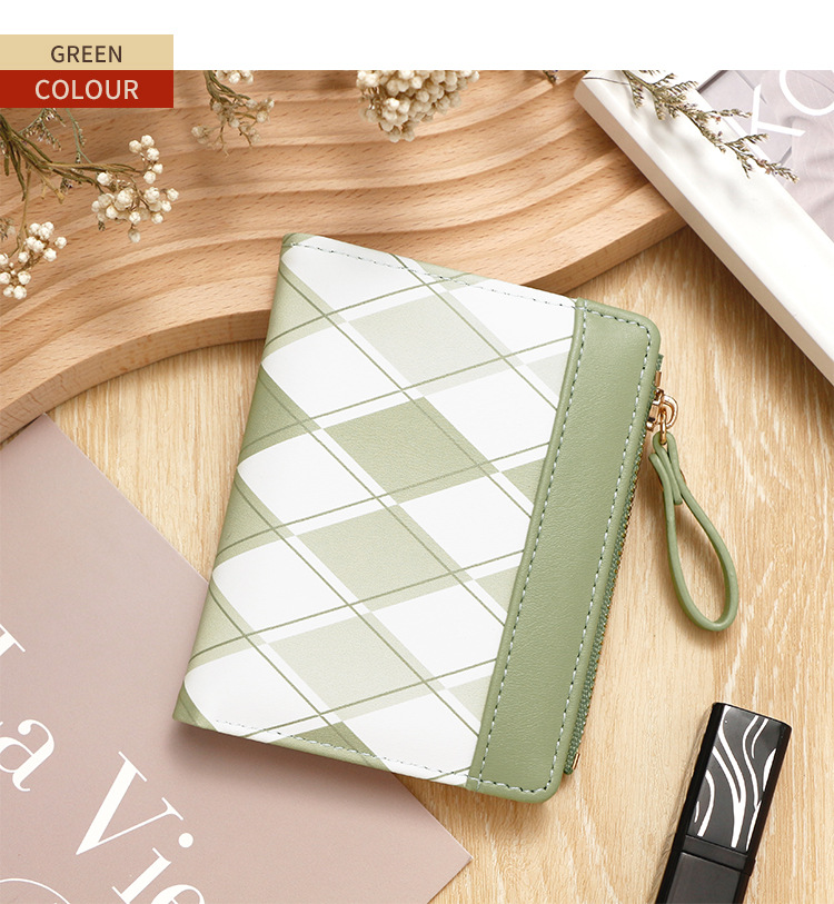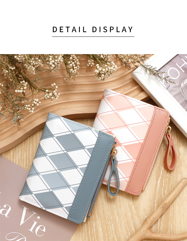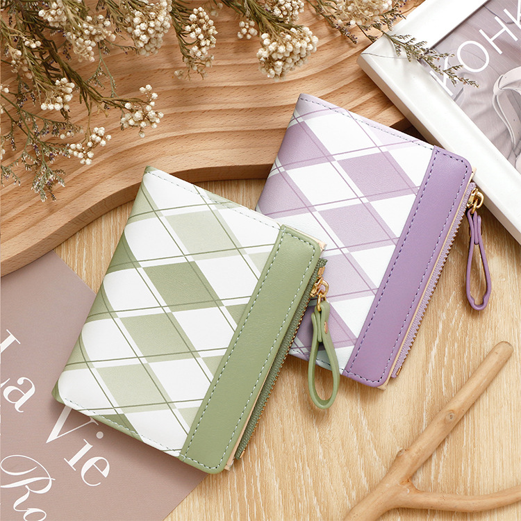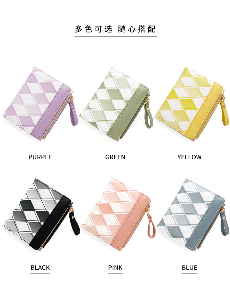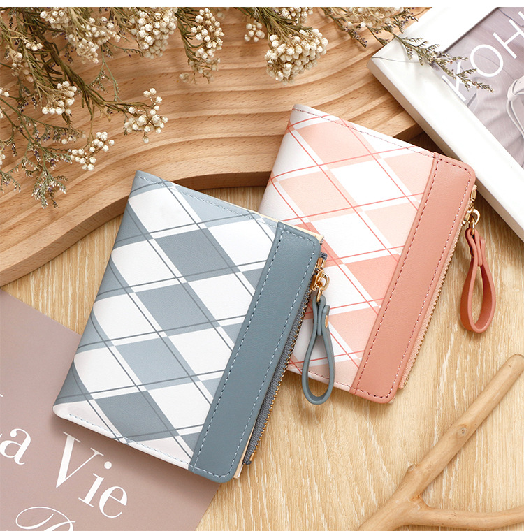 小钱包女款高级感小折叠wallet短款格纹撞色简约零钱包手拿包跨境