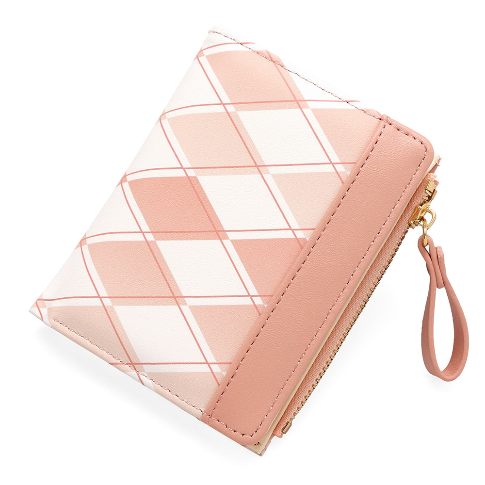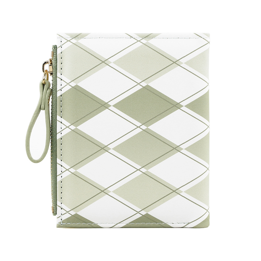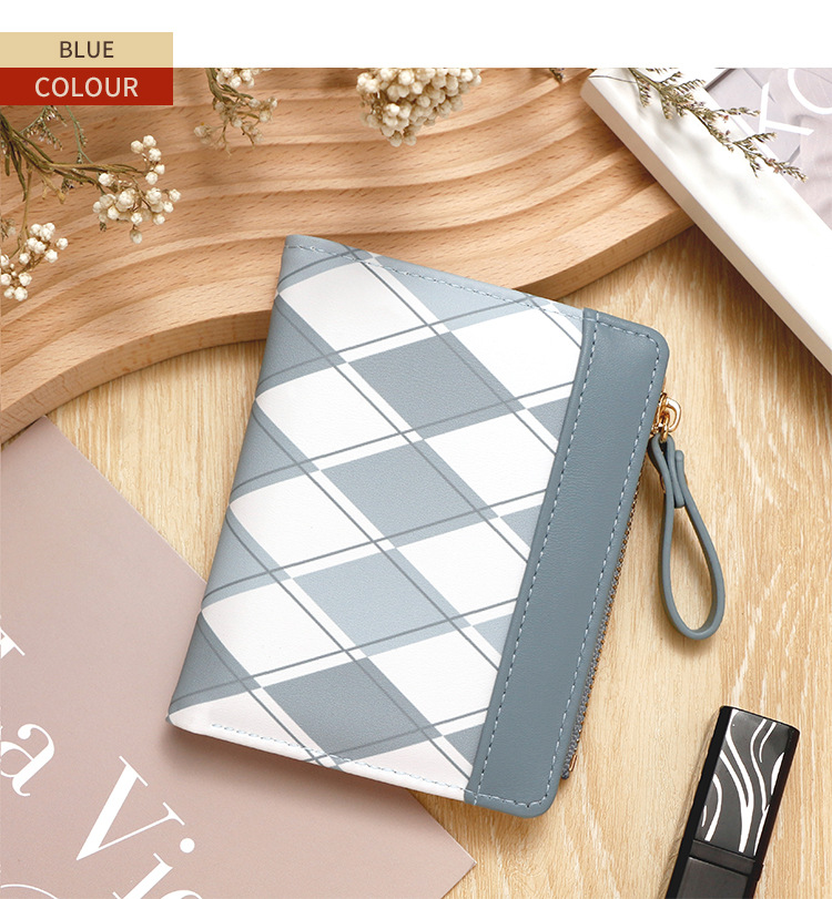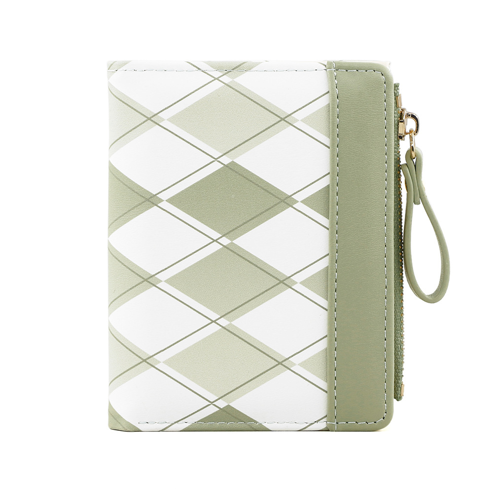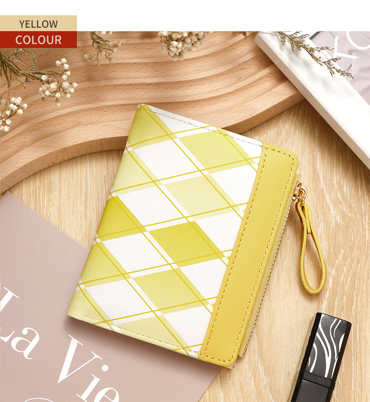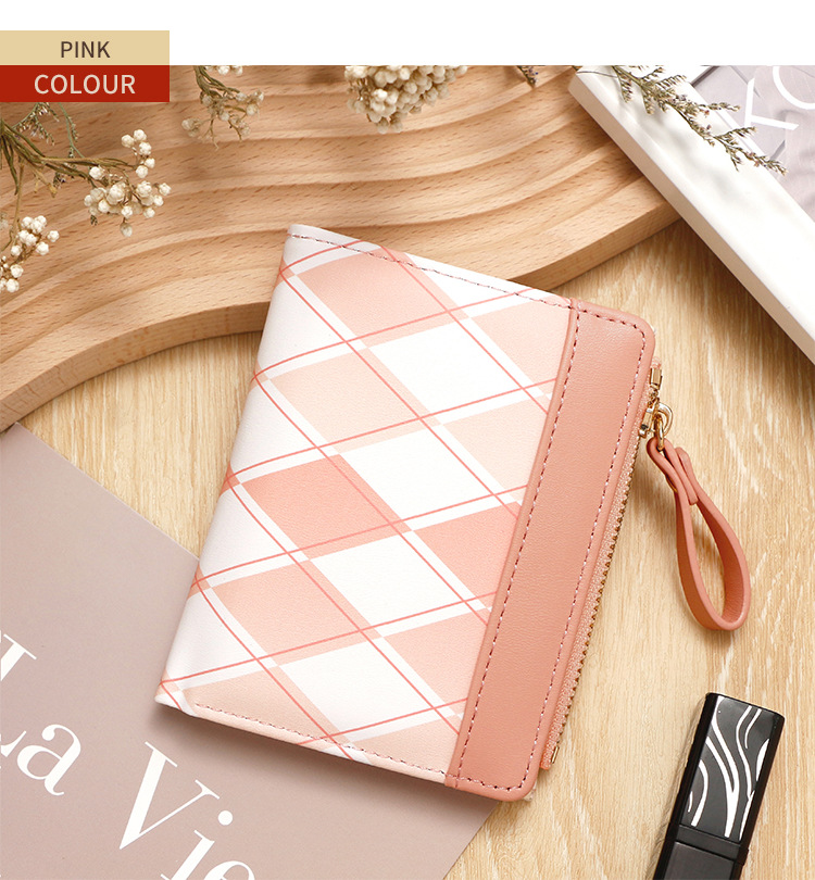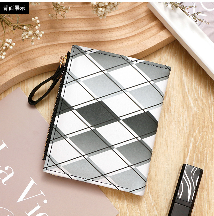 小钱包女款高级感小折叠wallet短款格纹撞色简约零钱包手拿包跨境