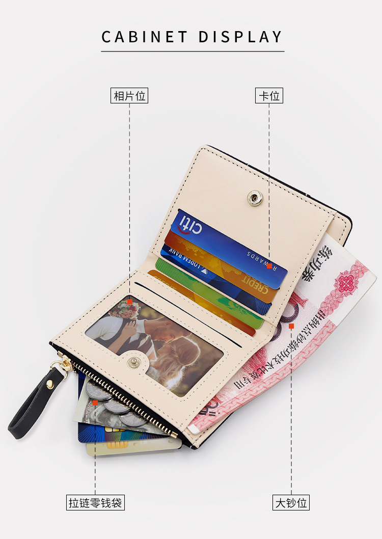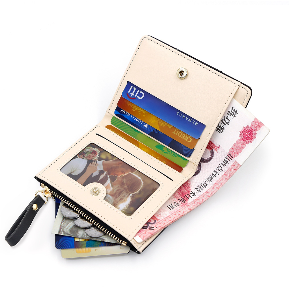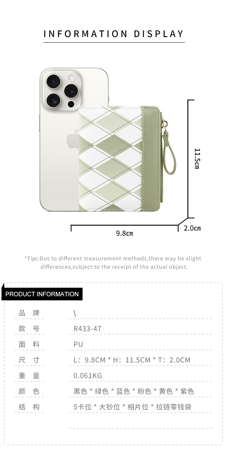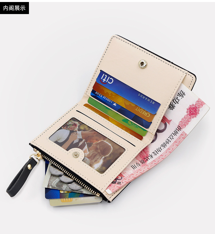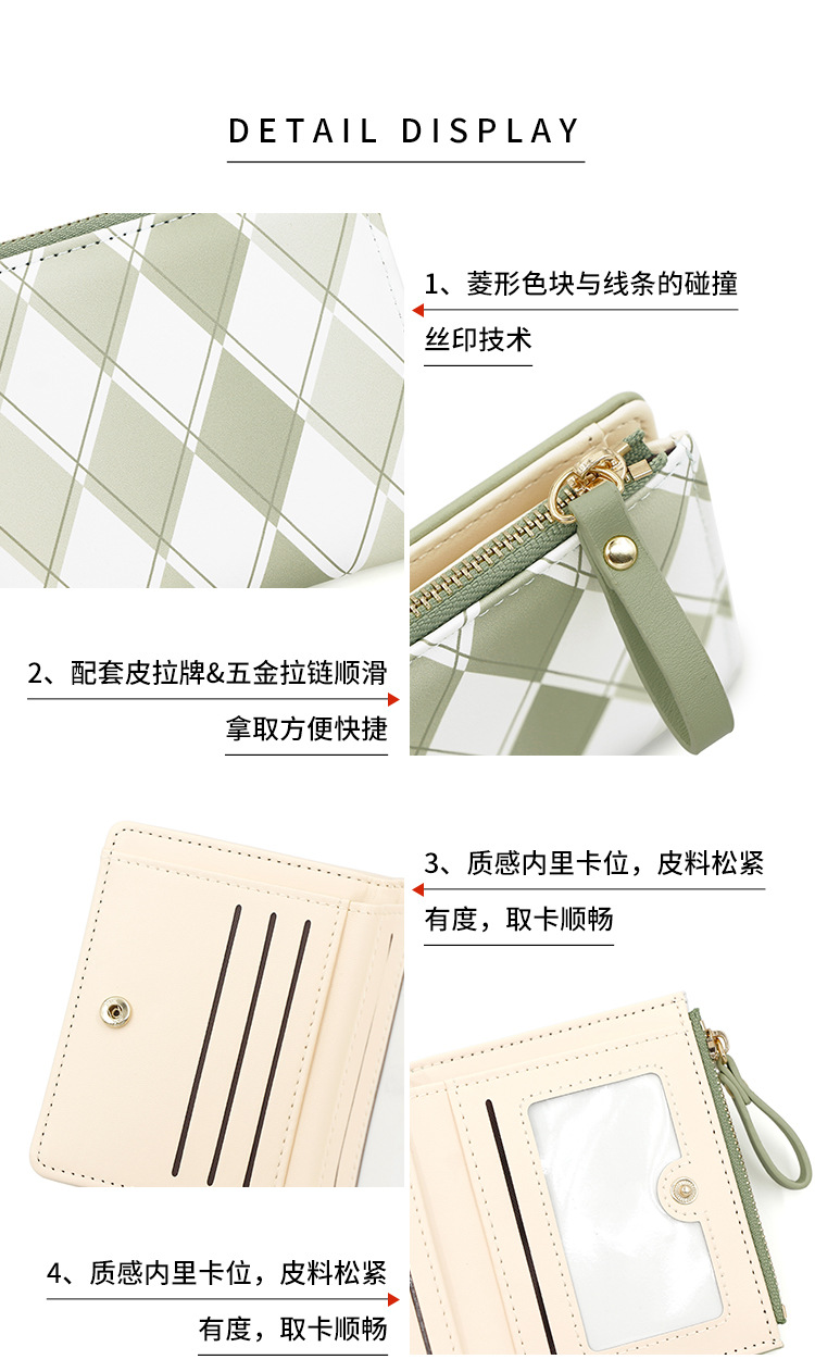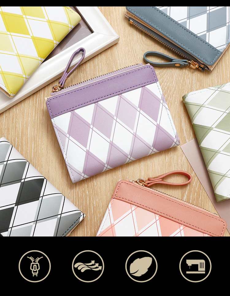 小钱包女款高级感小折叠wallet短款格纹撞色简约零钱包手拿包跨境