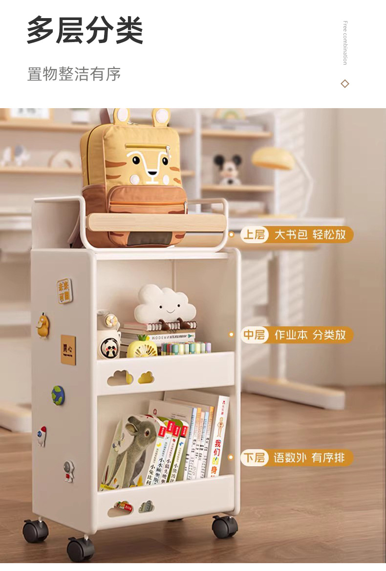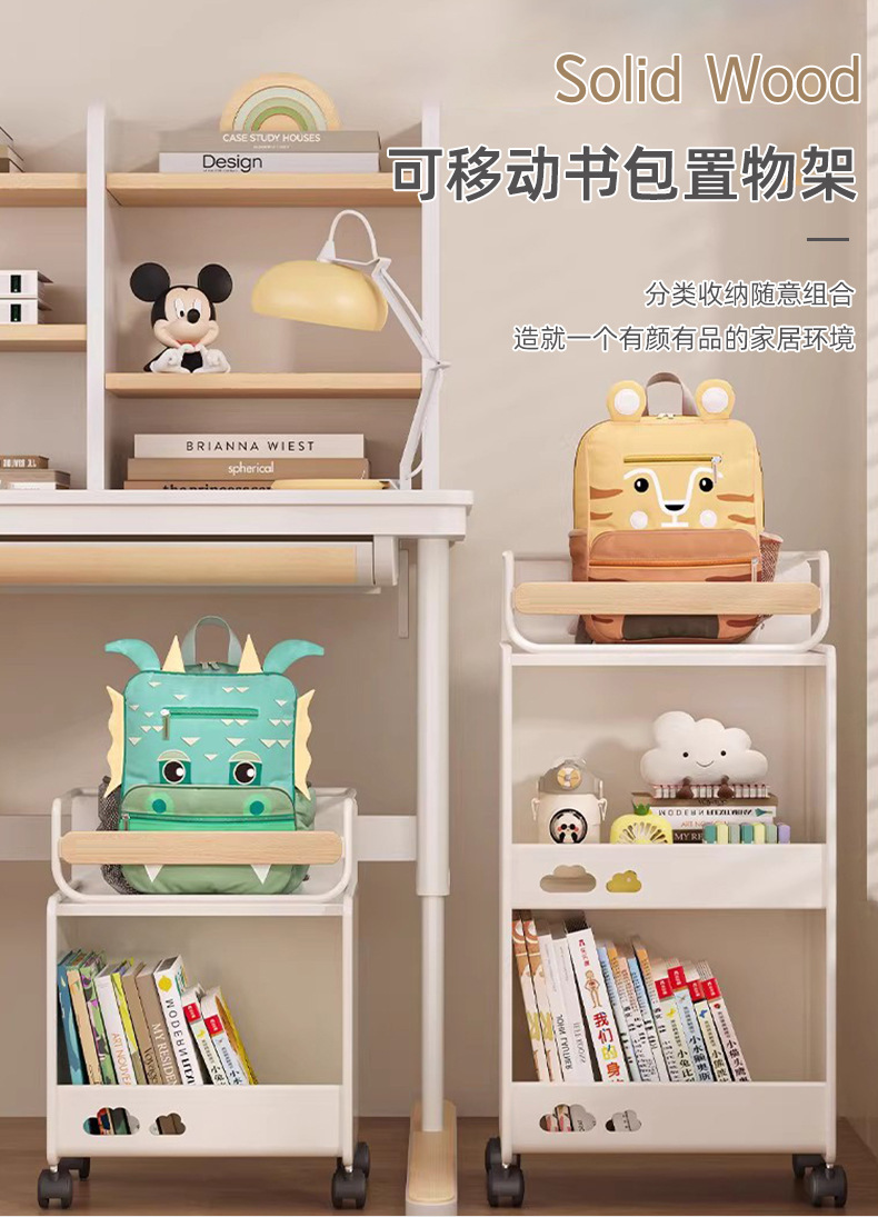代发三层推车置物架小学生书包书本收纳整理小推车办公室收纳架