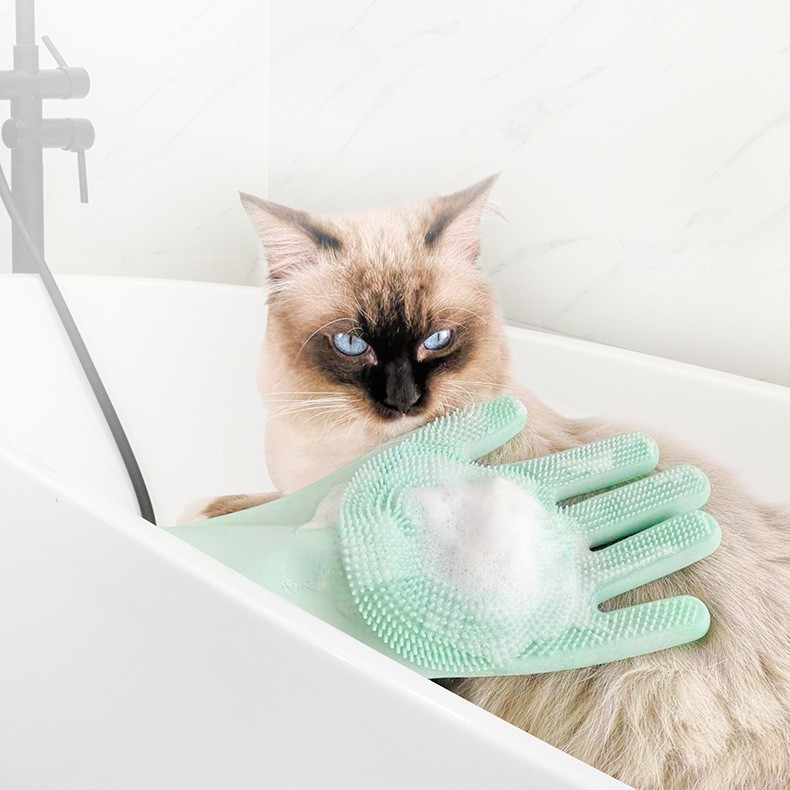 跨境爆款宠物用品狗狗猫咪通用硅胶颗粒洗澡除臭手套按摩神器货源