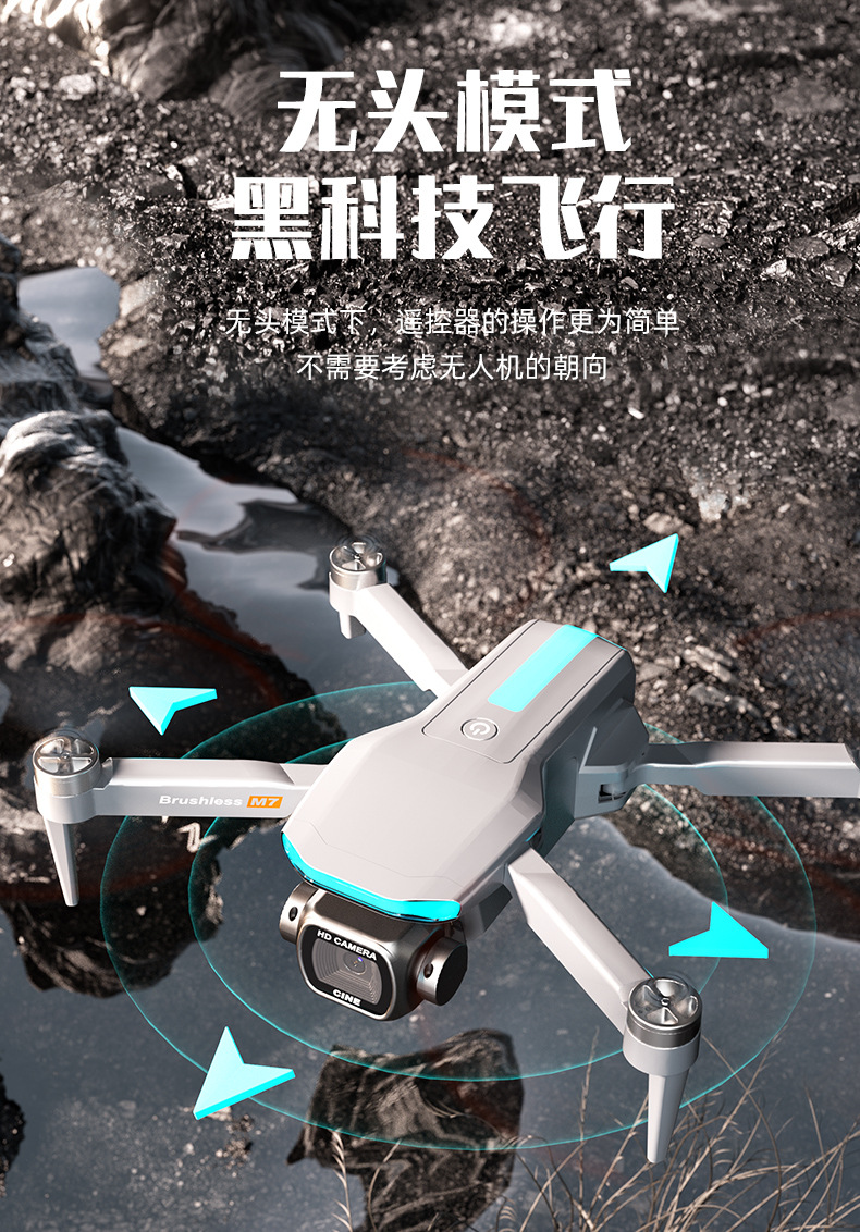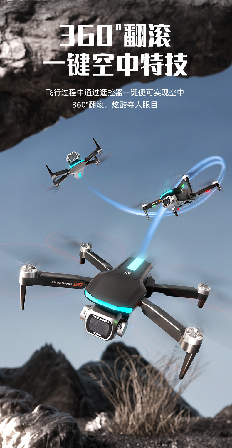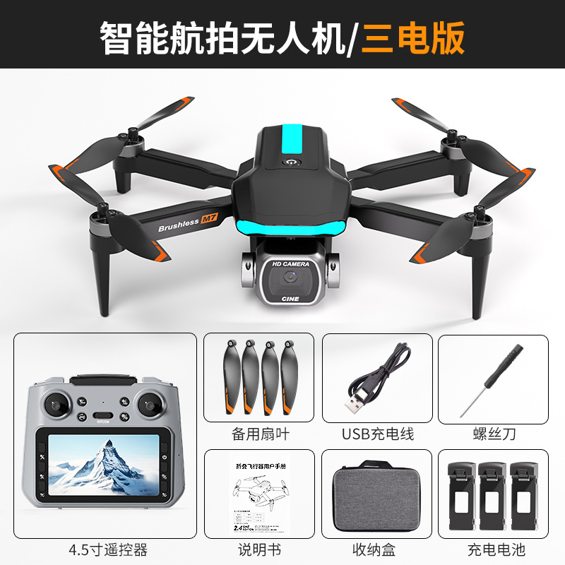 跨境新品M7无人机4.3大屏控无刷电机电调高清航拍双摄像头TOF玩具
