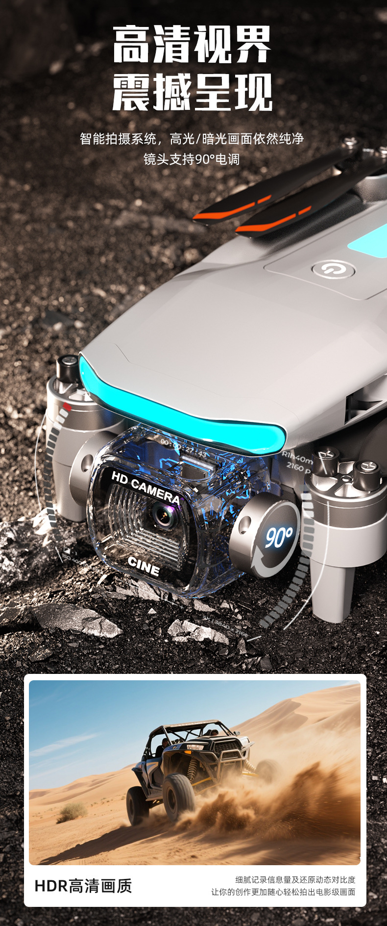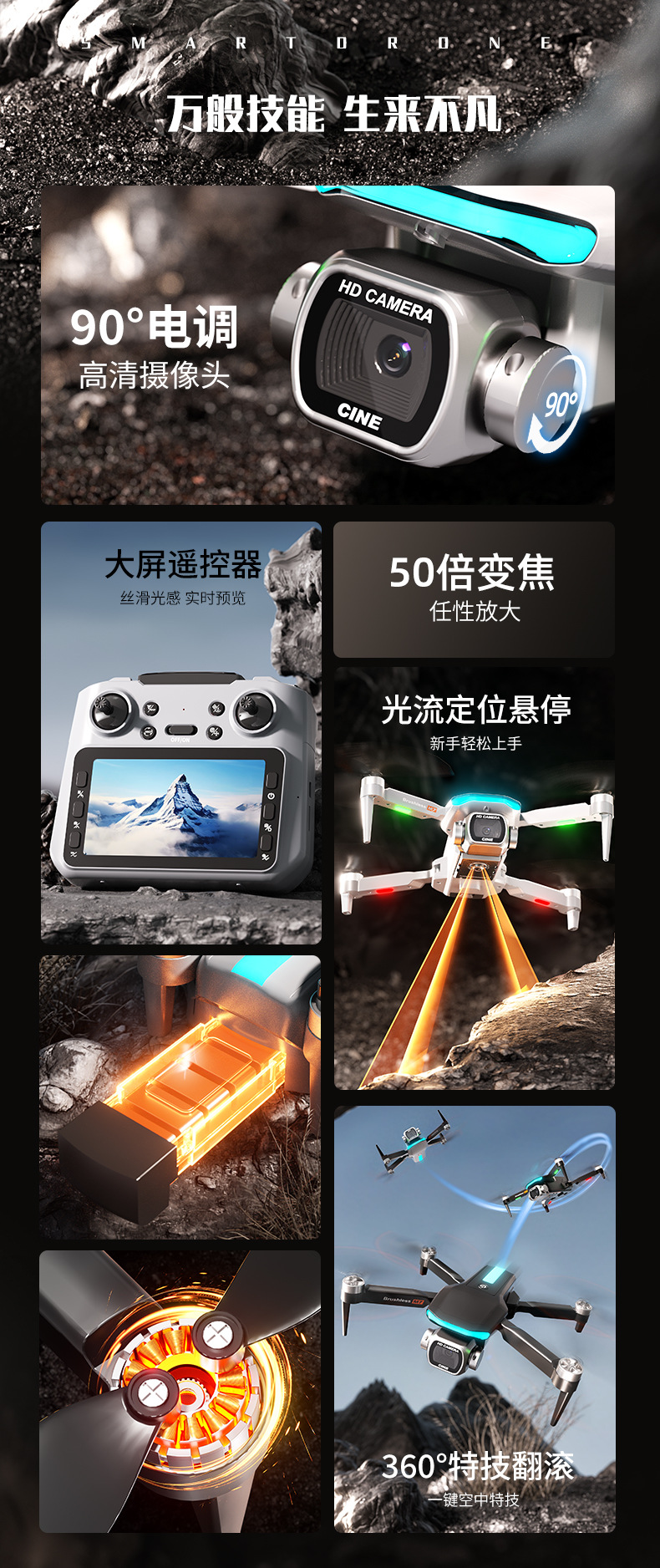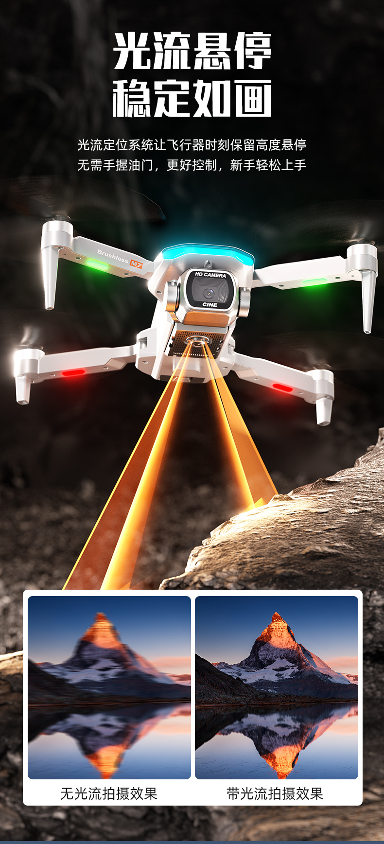 跨境新品M7无人机4.3大屏控无刷电机电调高清航拍双摄像头TOF玩具