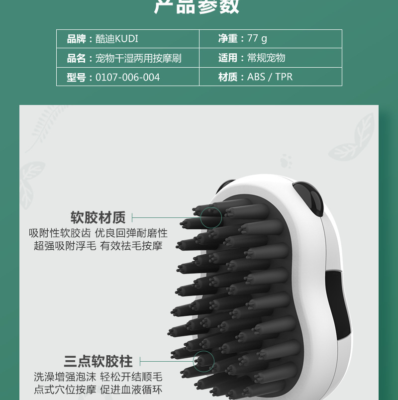 现货速发酷迪宠物洗澡刷熊猫款干湿两用狗狗按摩刷猫咪洗澡神器