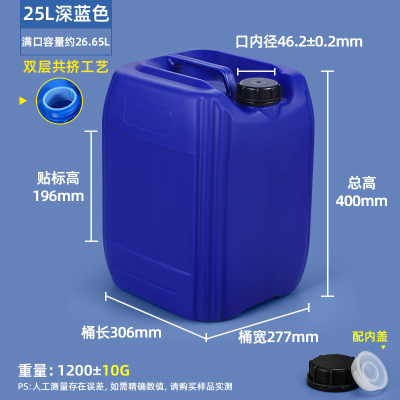 耐酸碱10公斤加厚方桶密封废液桶密封25升塑料桶化工食品级堆码桶