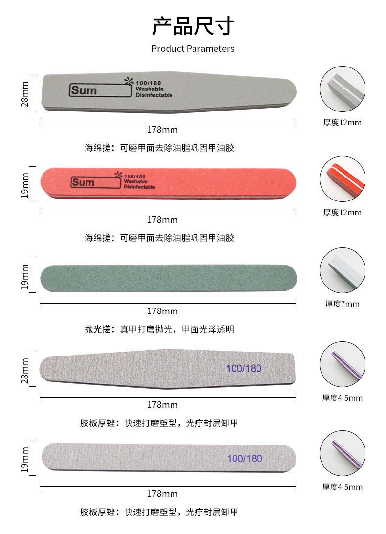 指甲锉美甲打磨双面搓条磨砂条卸甲套装海绵砂条修甲工具