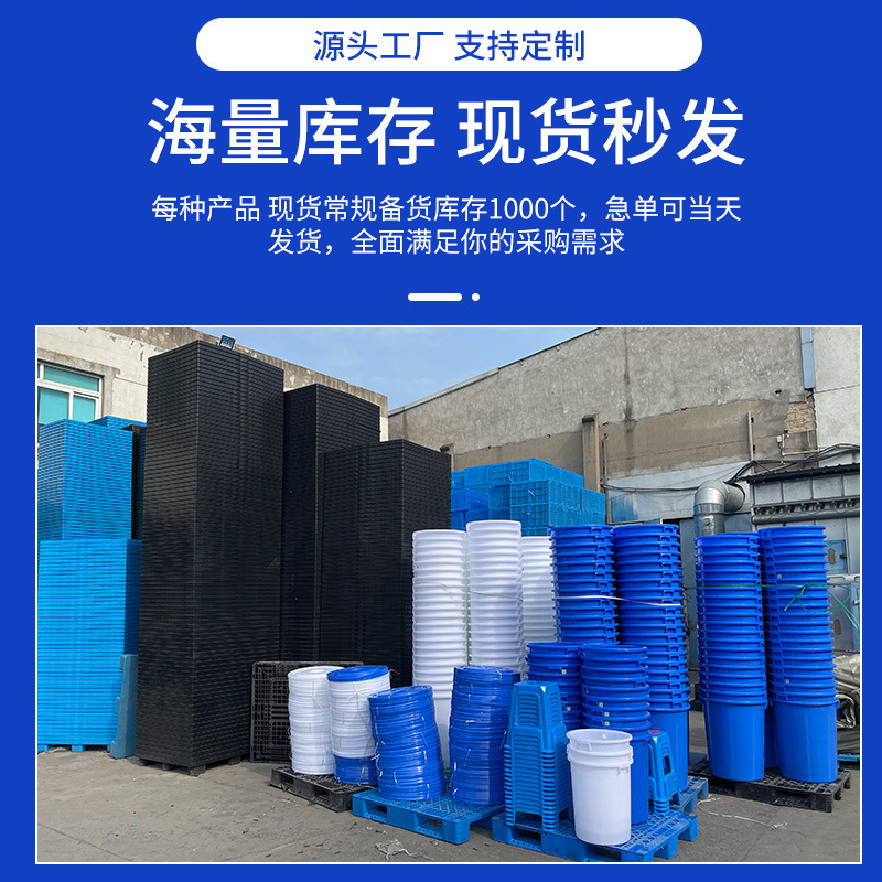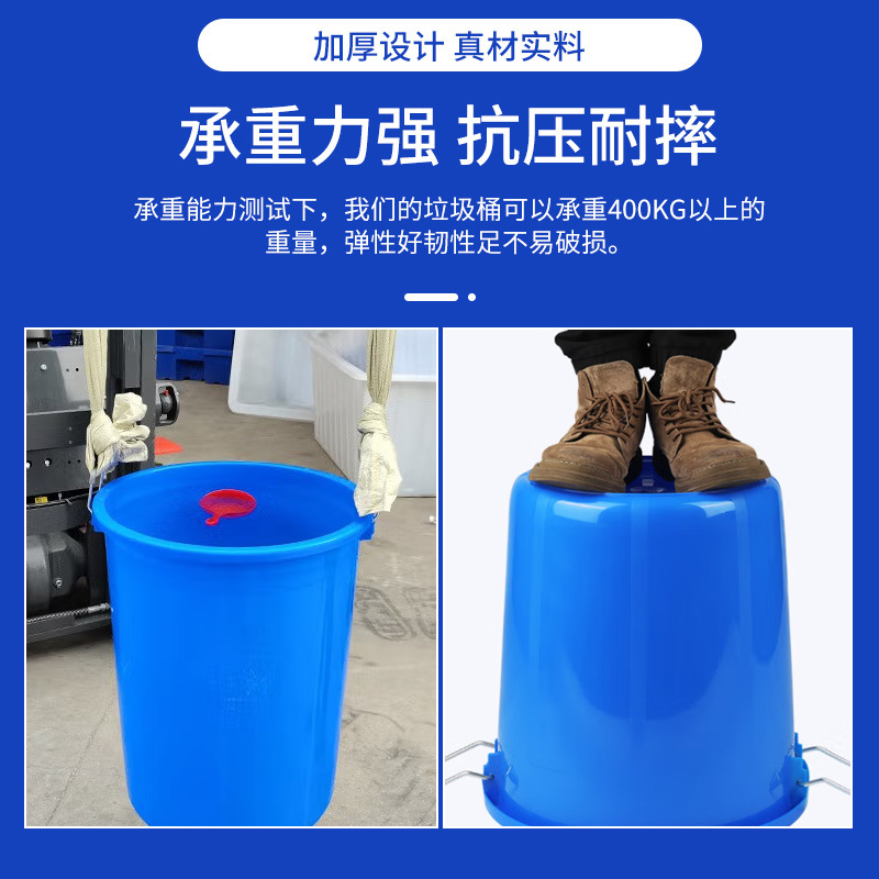 60L塑料水桶蓝白色储水圆形桶熟料桶食品级桶工业运输铁把垃圾桶
