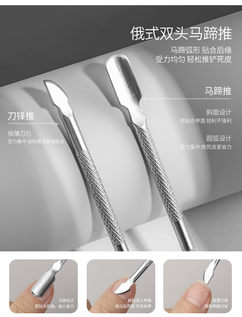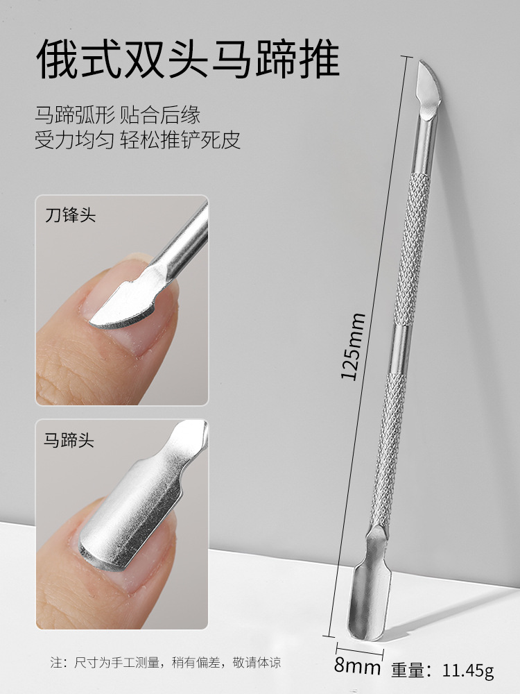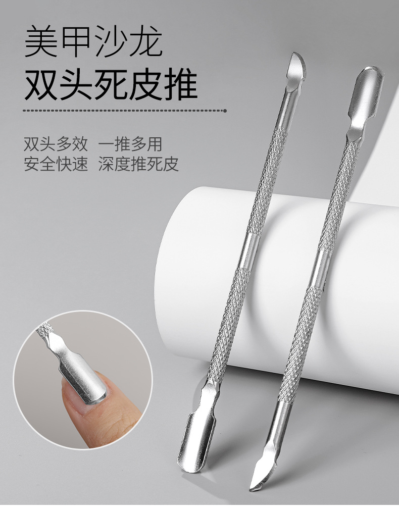 美甲工具钢推不锈钢高亮双头两用去角质修手卸甲死皮推易剪款批发