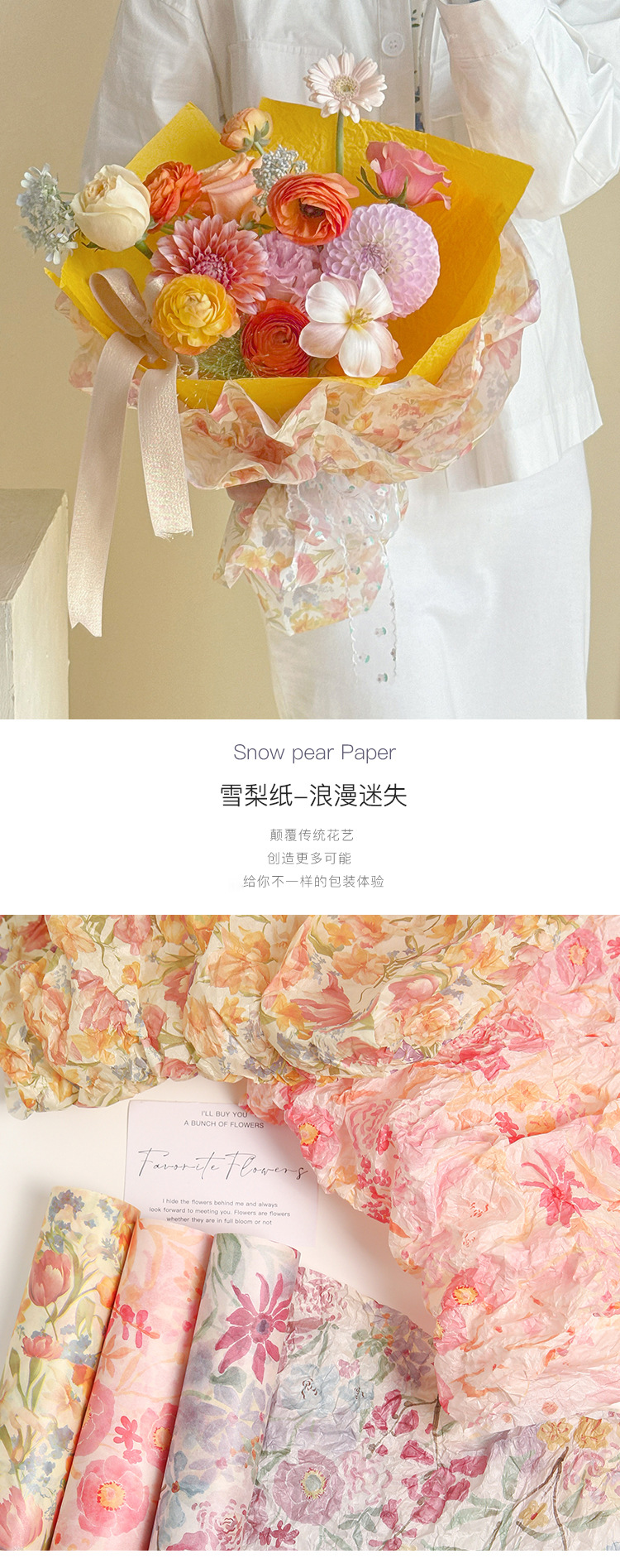 印花雪梨纸鲜花包装花束包花纸高颜值礼物打包花艺资材花店批发