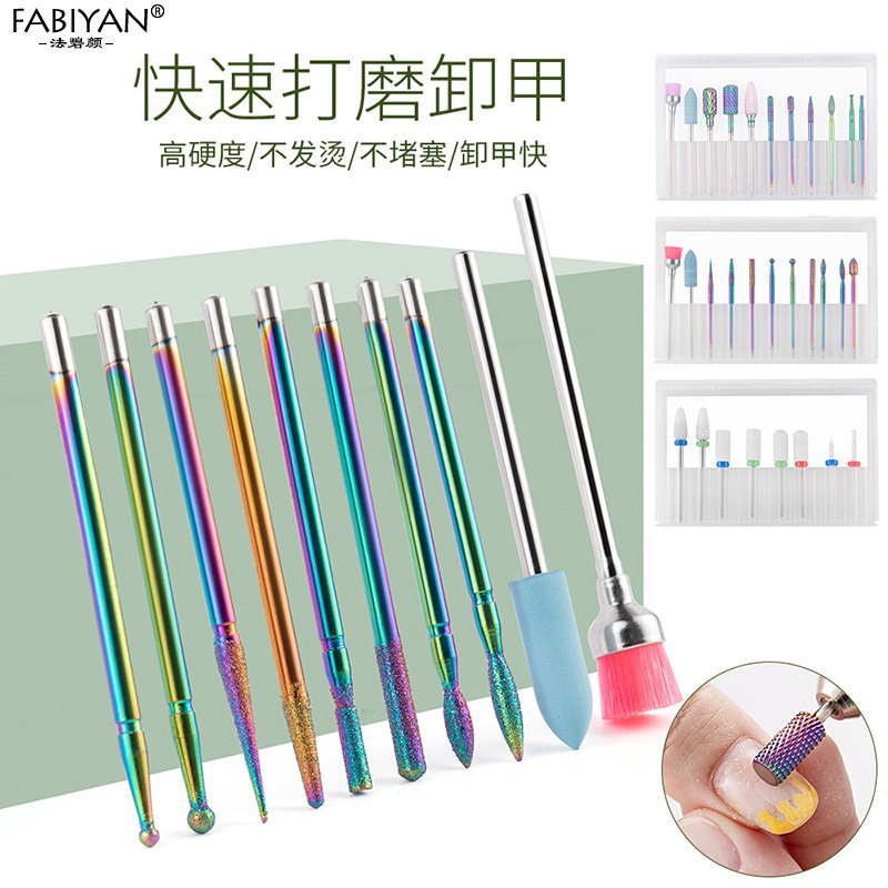 打磨头美甲钨钢套装卸甲前置处理镀钛打磨机头去死皮抛光工具盒装