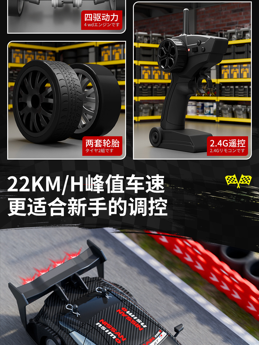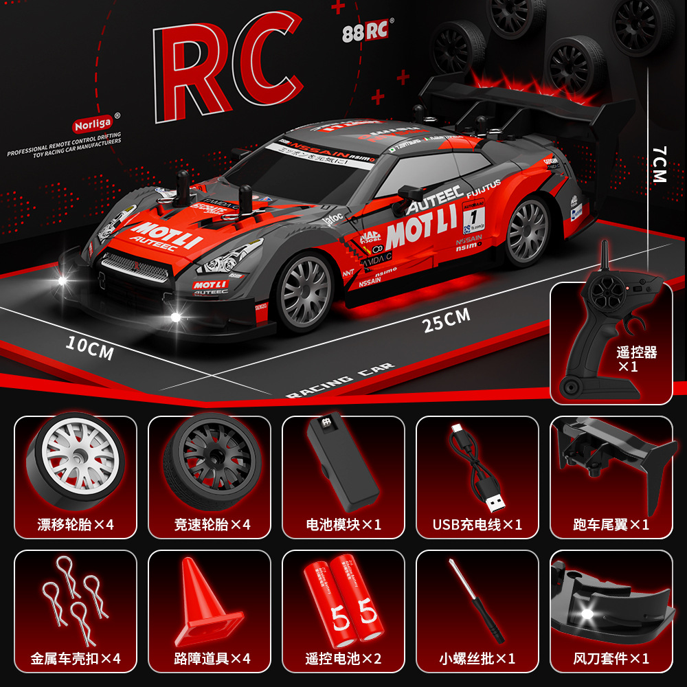 跨境2.4G遥控车漂移四驱电动玩具 高速赛车越野儿童汽车模型GTR