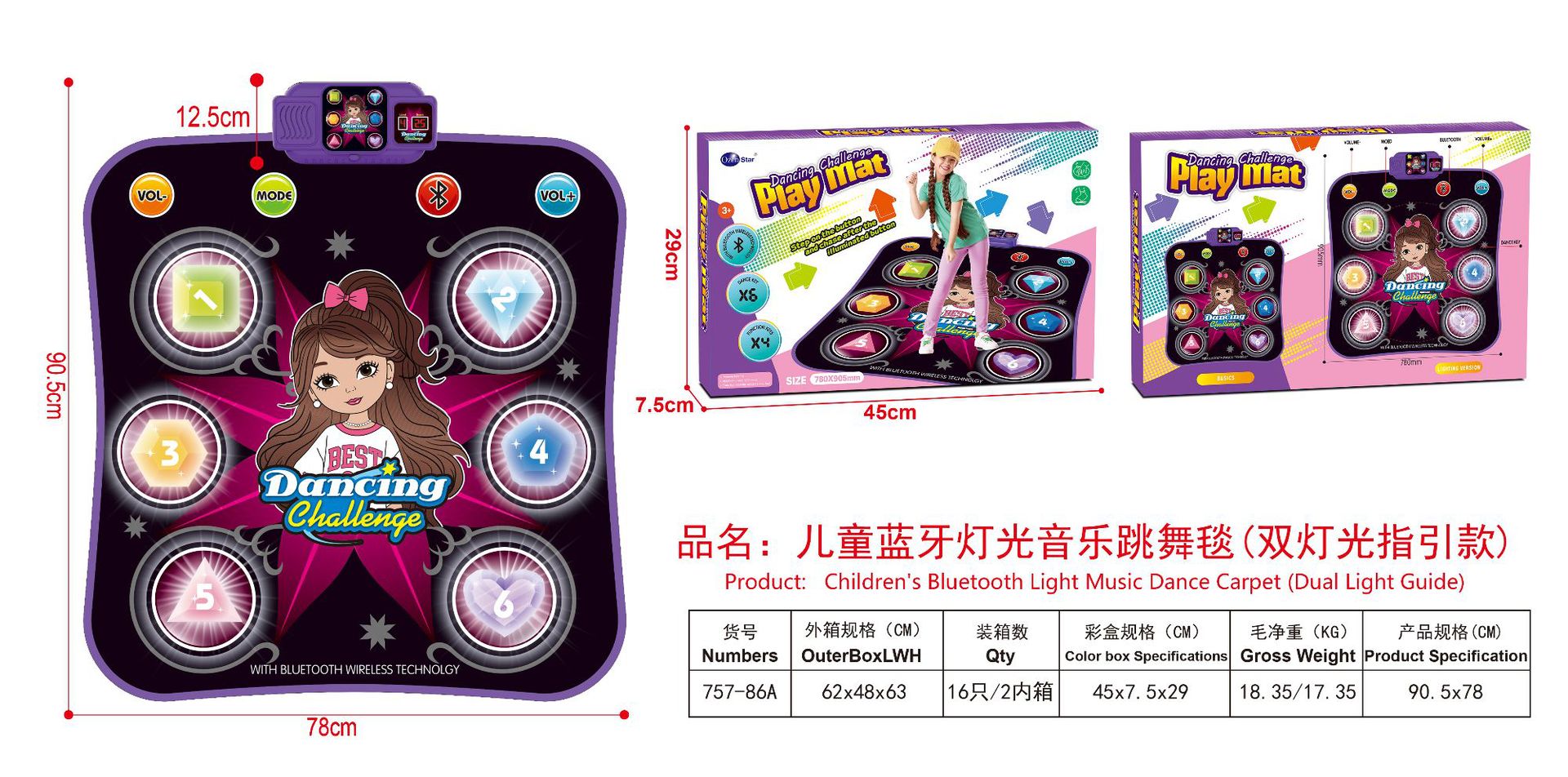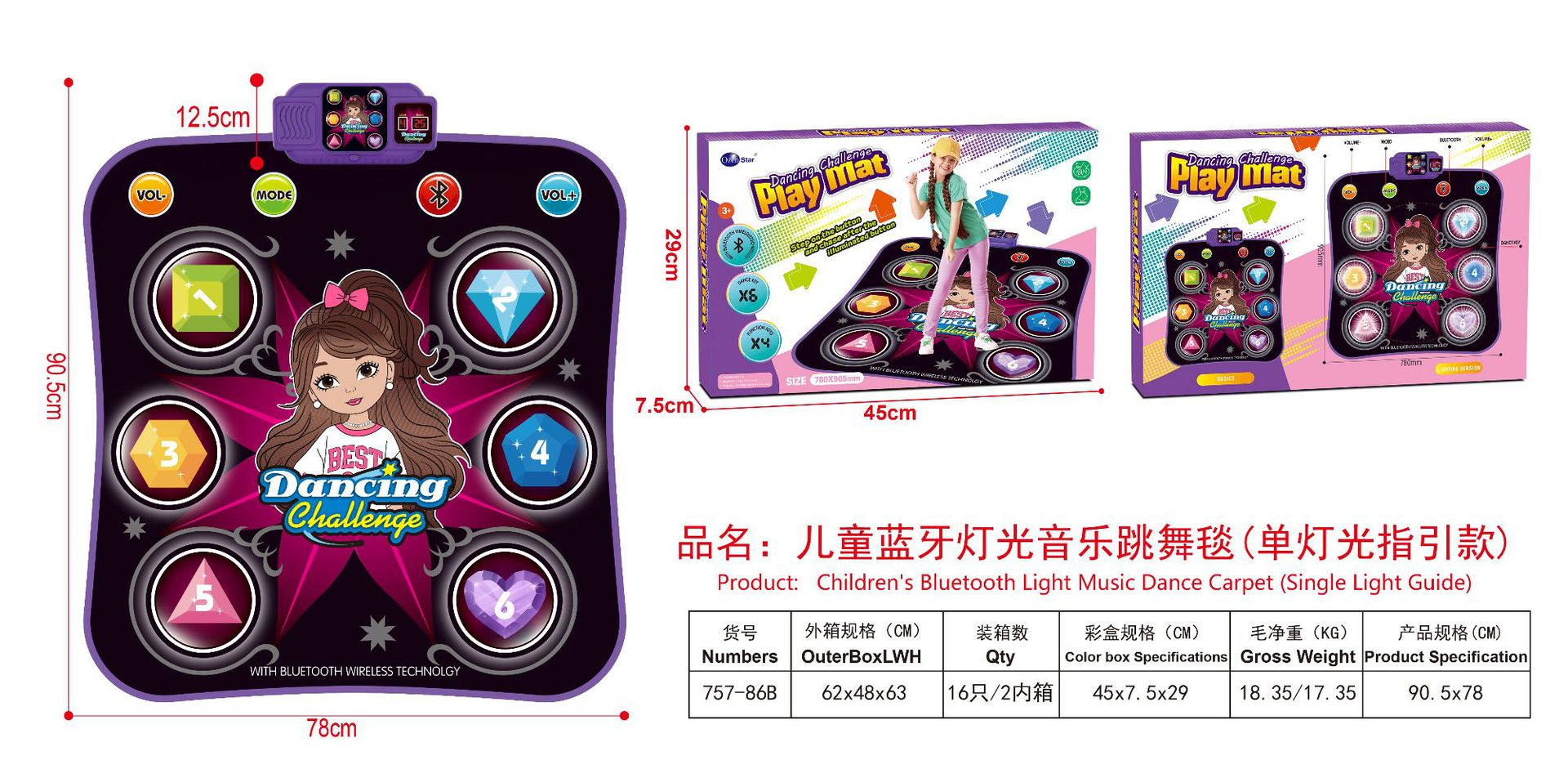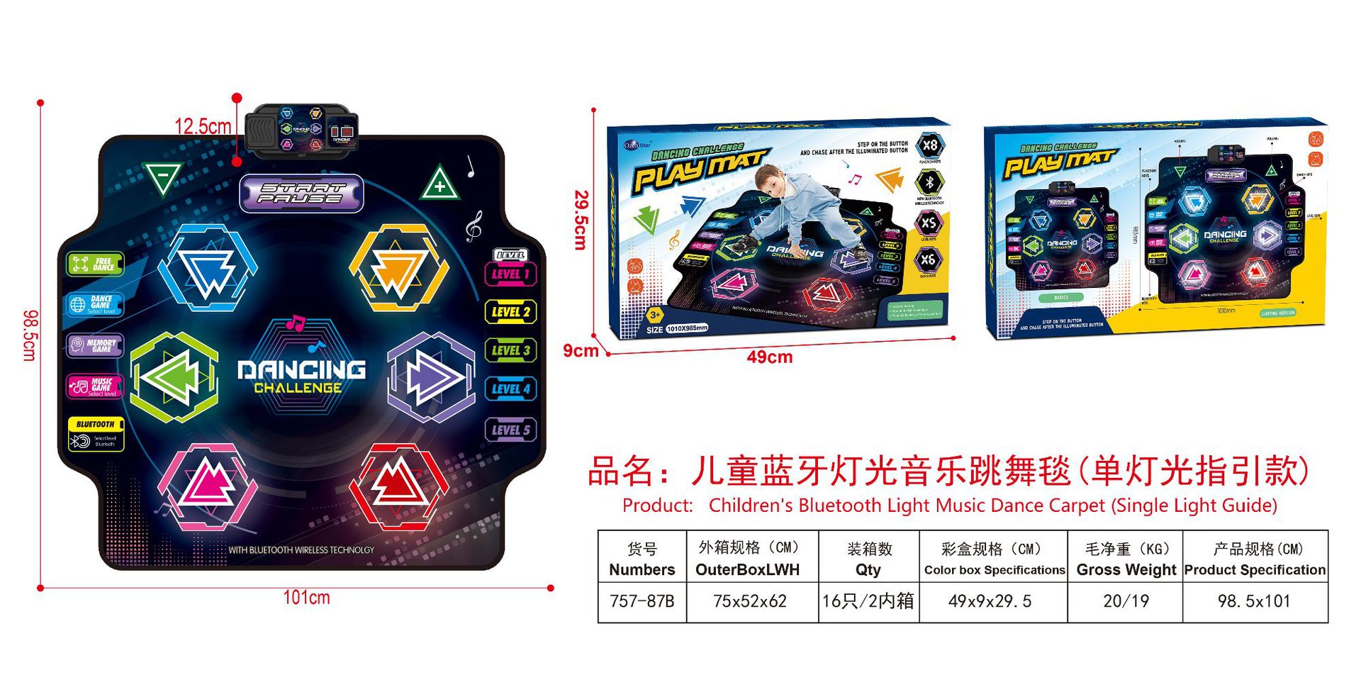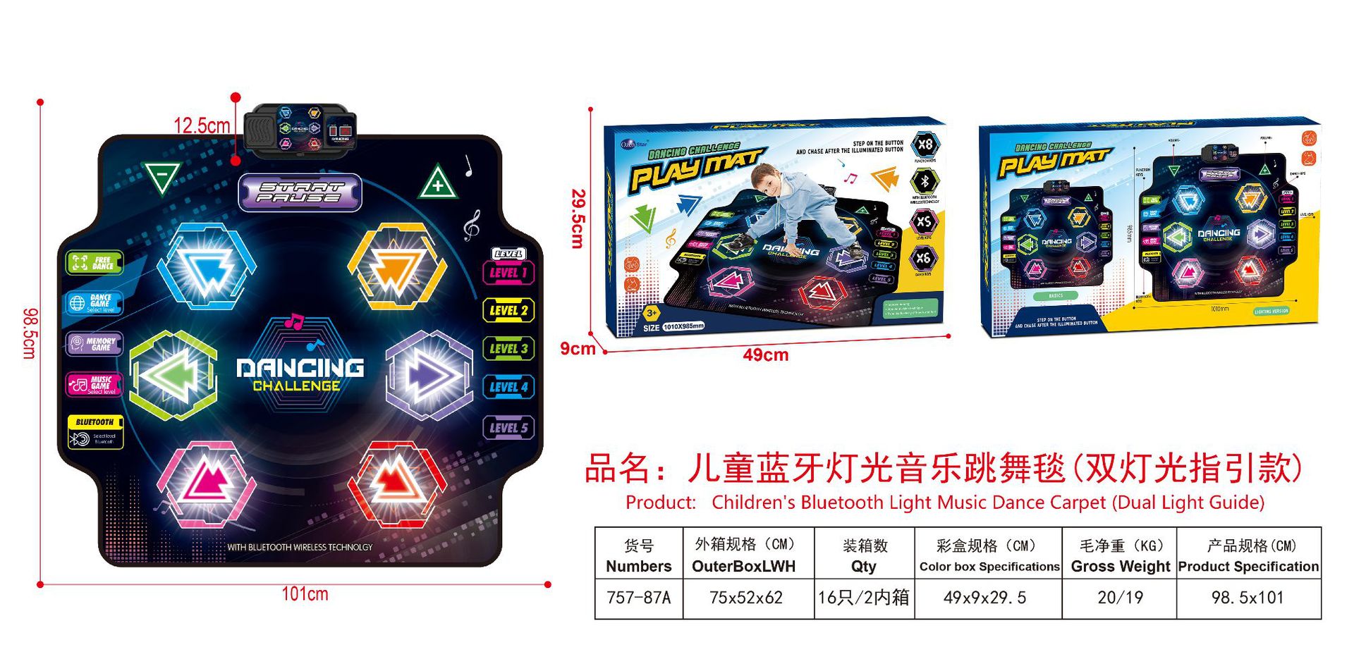 跨境儿童益智发光蓝牙多功能钢琴游戏垫户外音乐踩踏跳舞毯玩具