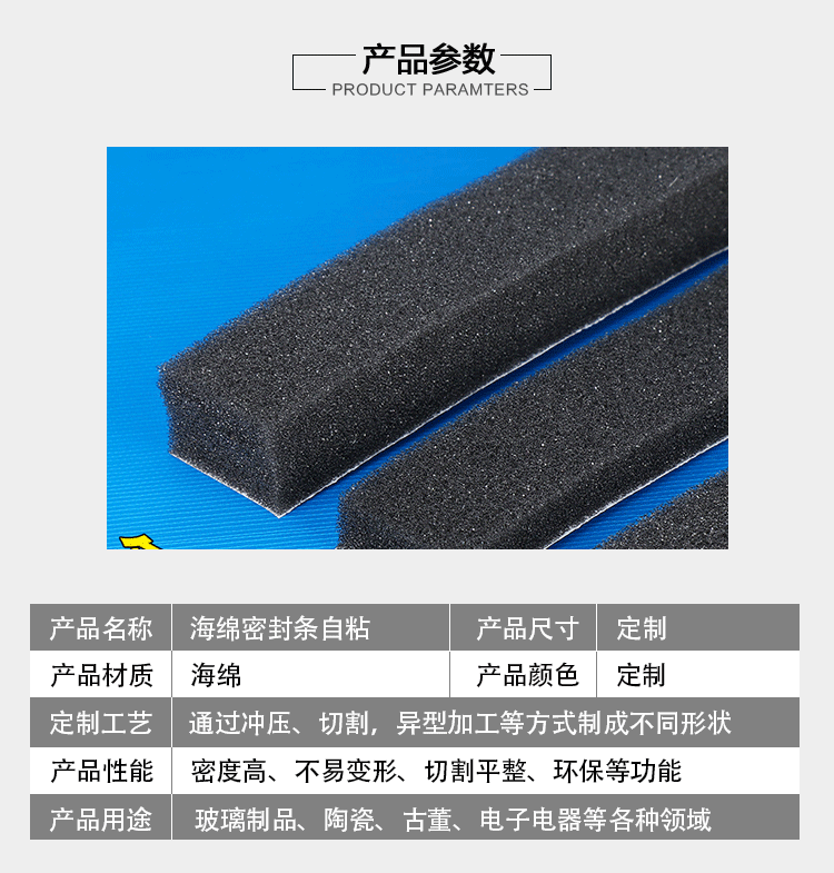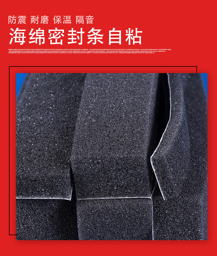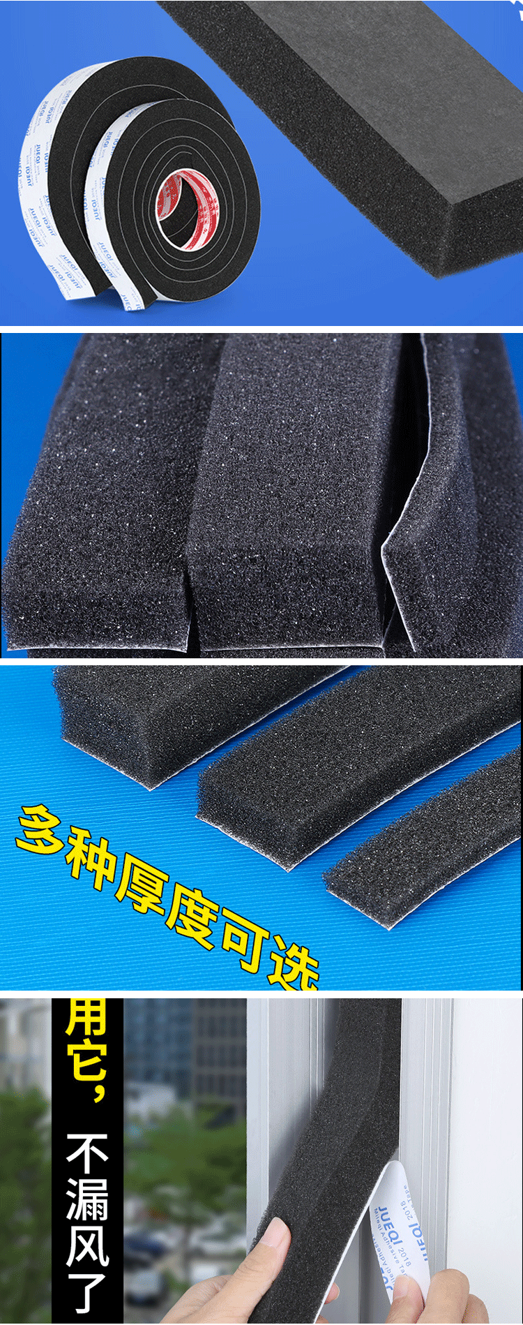 黑色柔软海绵门缝密封条门窗防风隔音防震缓冲泡绵条密封胶条