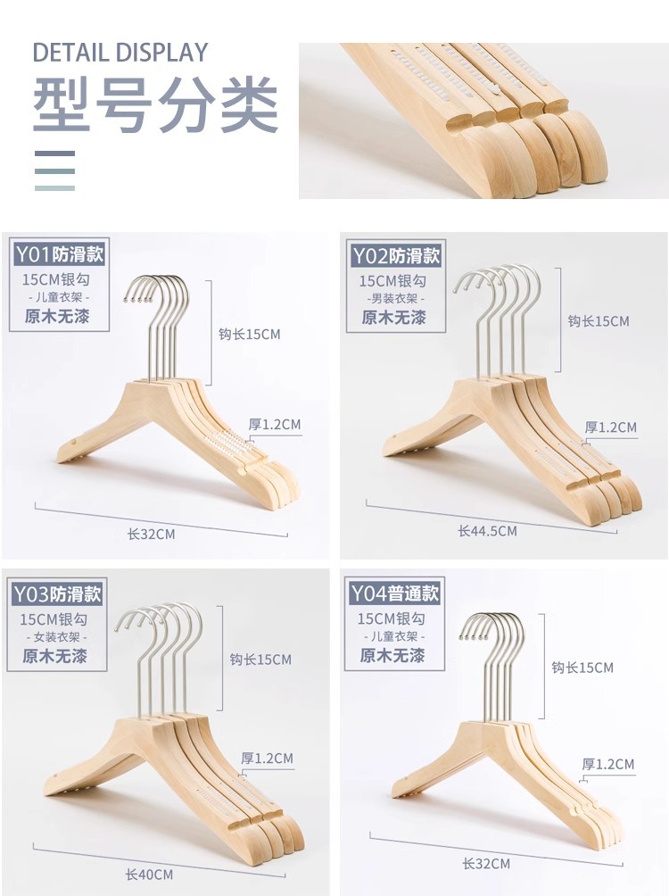 服装店木衣架女装店童装店衣架儿童防滑收纳衣撑无漆实木裤架衣架