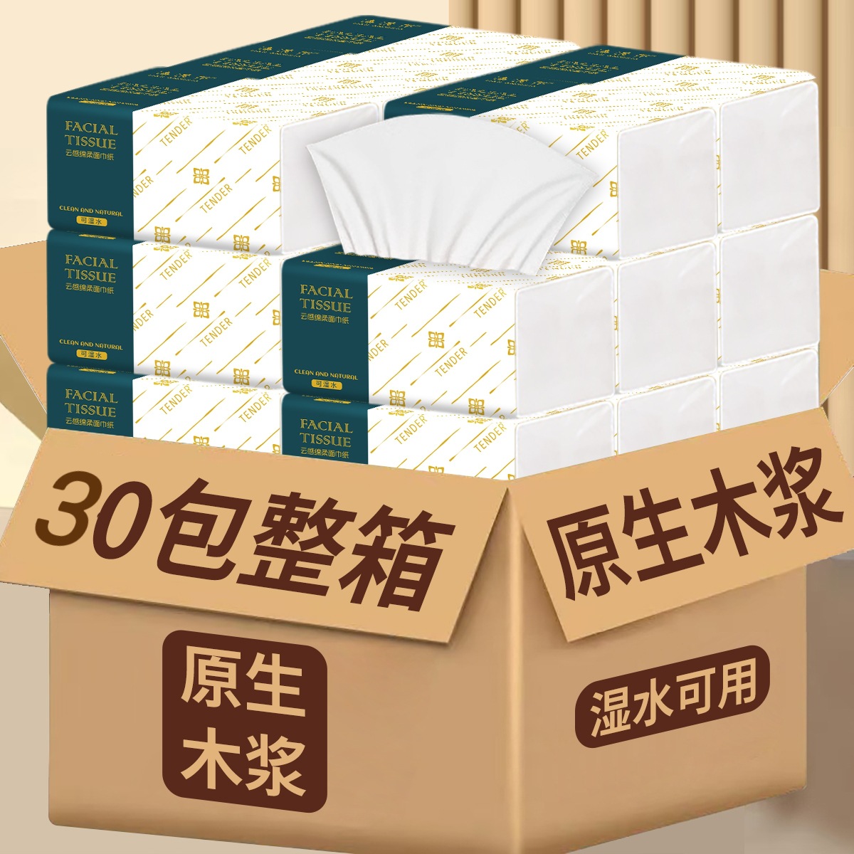 抽纸纸巾家用大包整箱批发实惠装原生木浆卫生纸加厚加大餐巾纸