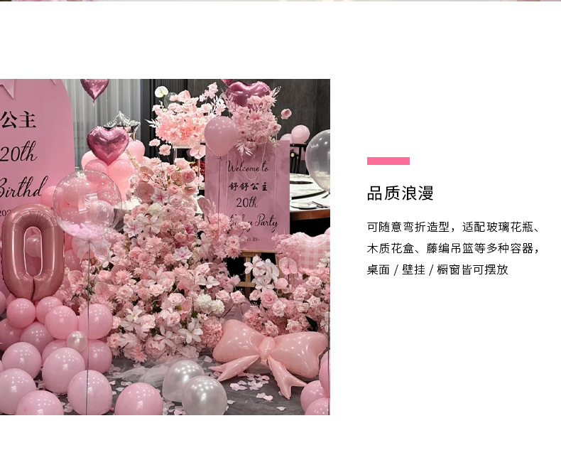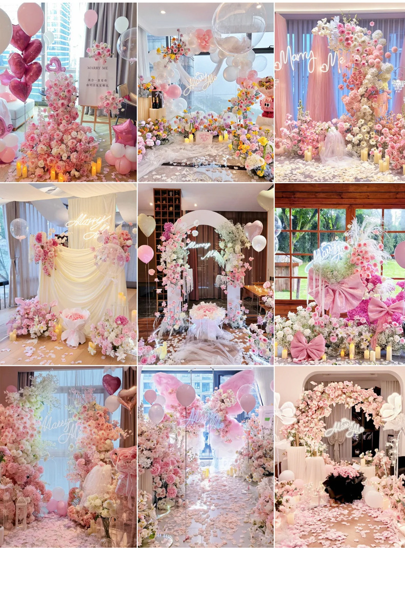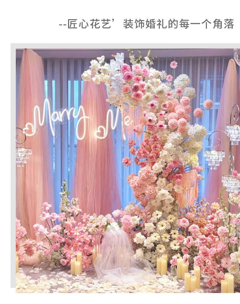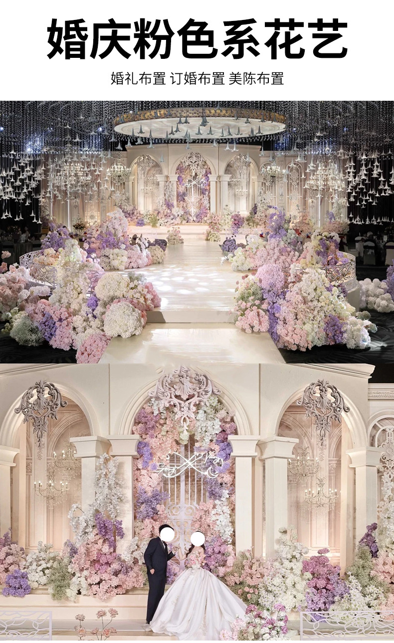 粉色婚庆仿真花婚礼布置吊顶花艺路引插花花材绢花装饰花假花花束