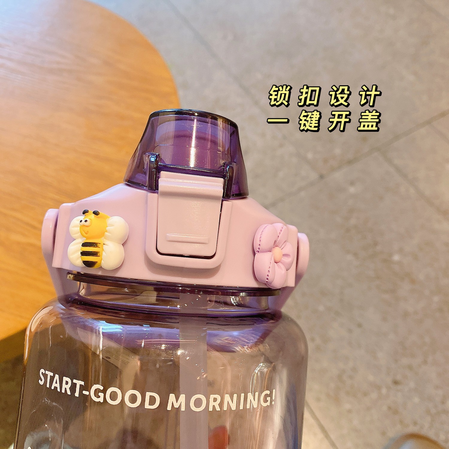 2025大号容量水杯子带吸管时间刻度2000ml运动网红夏季水瓶